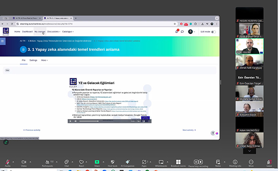 “EULEP projesi kapsamında Yapay Zeka, Sanal Gerçeklik ve Sosyal İnovasyon konularında geliştirdiğimiz müfredatın, önümüzdeki dönemde pilot uygulamalarını yapmak üzere eğiticilerin eğitimine katılacak potansiyel eğitmenlere, Birliğimizce ön bilgilendirme yapılmıştır." 23.08.2024