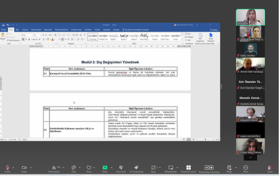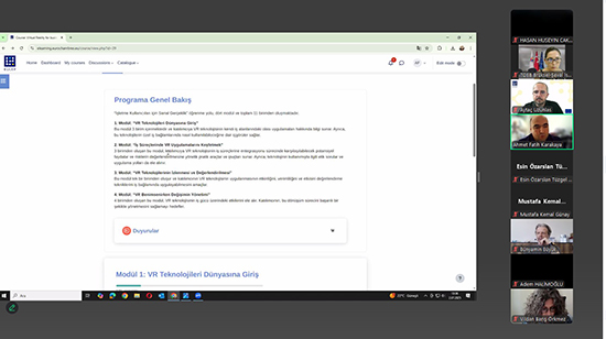 2 Temmuz 2025 tarihinde gerçekleşen online toplantı ile şirket personellerine yönelik tasarlanan “yapay zeka”, “sanal gerçeklik” ve “sosyal inovasyon -değişim yönetimi” eğitim modülleri Oda/Borsalarımıza ve üyelerimize tanıtıldı.
