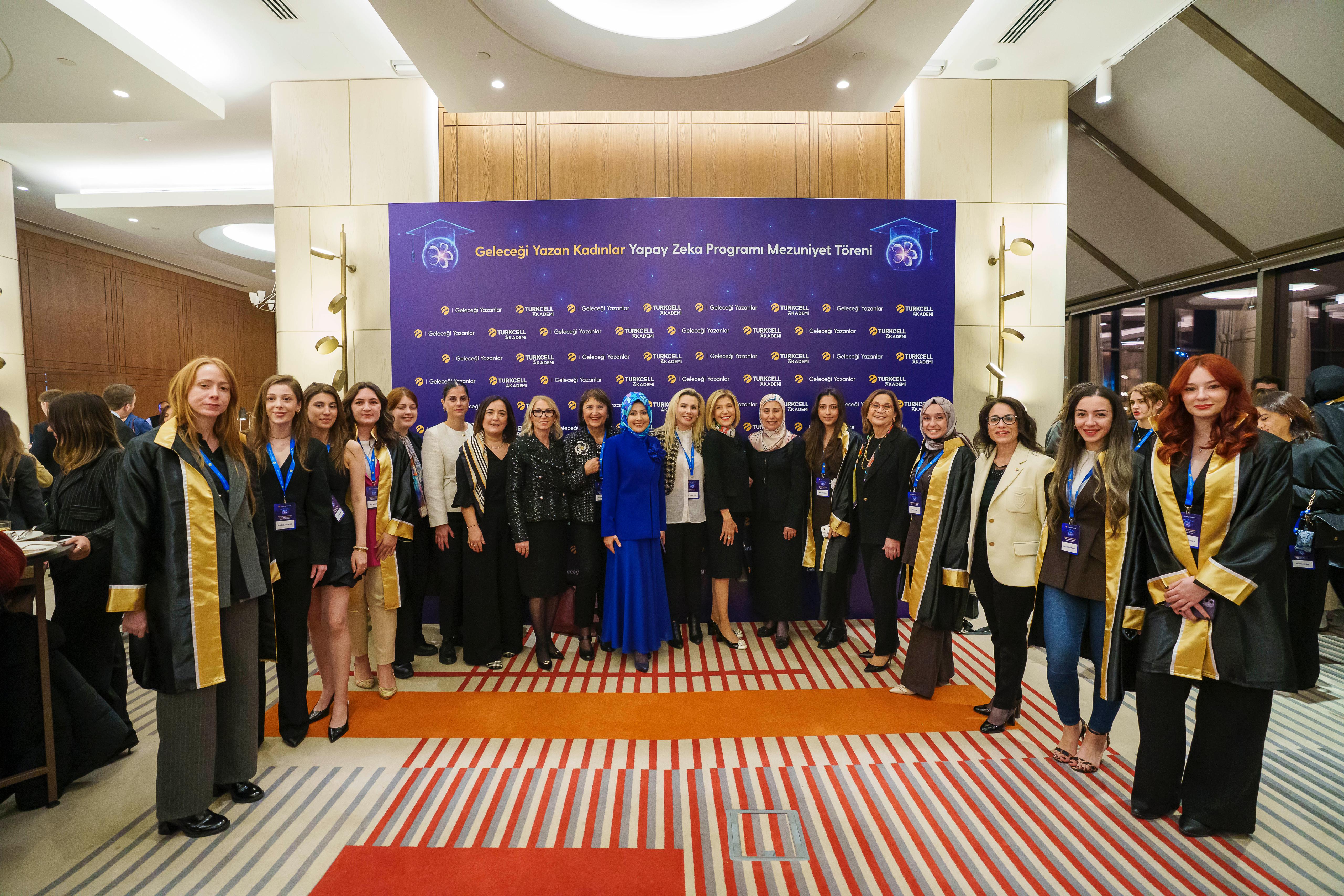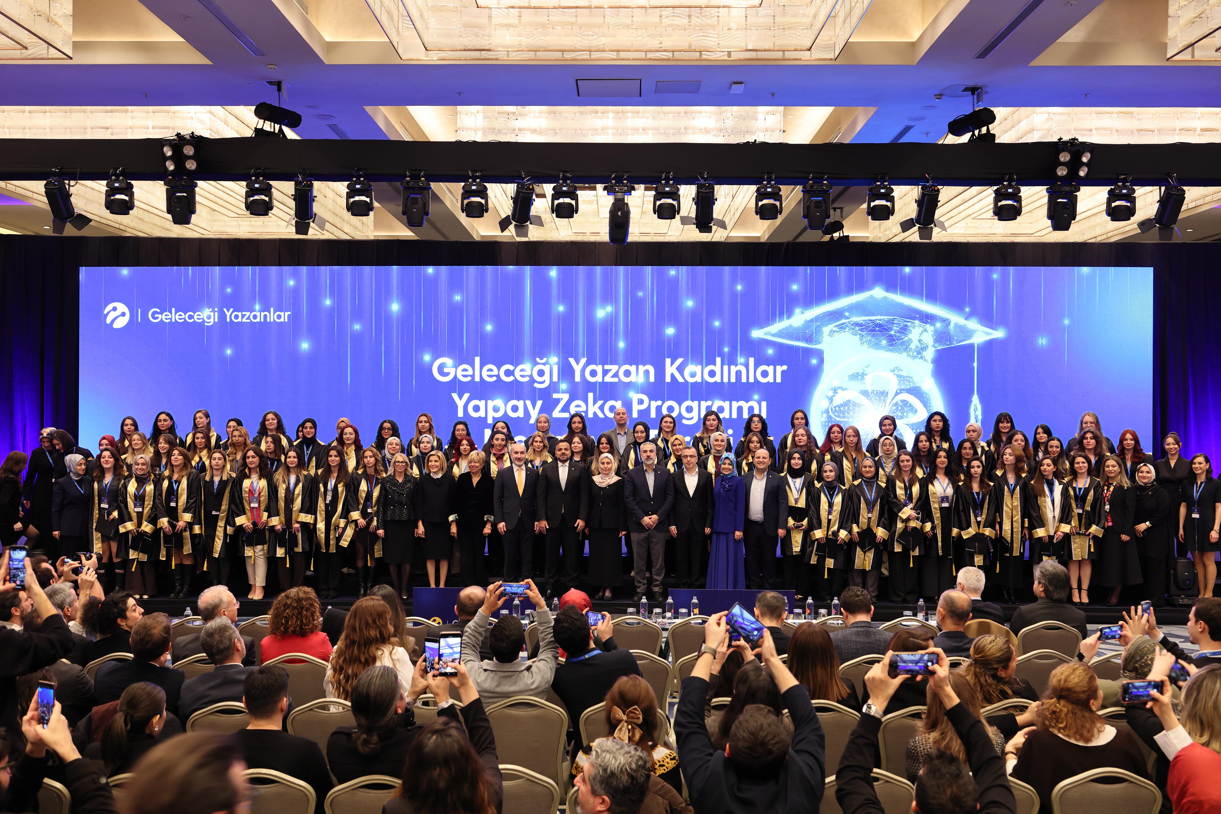 Programın ikinci bölümünde ise, birincilerin ödülleri takdim edilirken, Geleceği Yazan Kadınlar Projesi Yapay Zekâ Eğitimlerinden mezun olanlar sertifikalarını alarak keplerini attı.