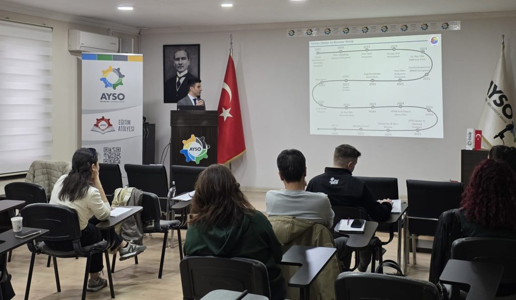Toplantıda, sanayi sektörünün dönüşüm sürecinde giderek önem kazanan yeşil dönüşüm uygulamaları ile Avrupa Birliği’nin Sınırda Karbon Düzenleme Mekanizması kapsamındaki güncel gelişmeler ele alındı. İşletmelerin rekabet gücü, ihracat süreçleri ve sürdürülebilir üretim anlayışı açısından öne çıkan başlıklar katılımcılarla paylaşıldı.