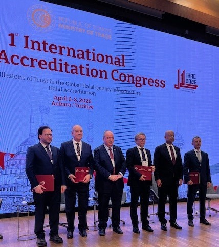 6-8 Nisan 2026 tarihleri arasında Ankara’da gerçekleştirilen I. Uluslararası Helal Akreditasyon Kongresi, Ticaret Bakanı Prof. Dr. Ömer Bolat, Helal Akreditasyon Kurumu Başkanı Zafer Soylu, TİKA Başkanı Abdullah Eren, İslam Ülkeleri Standartlar ve Metroloji Enstitüsü (SMIIC) Genel Sekreteri ve dünya helal akreditasyon sistemi temsilcilerinin katılımıyla düzenlendi.