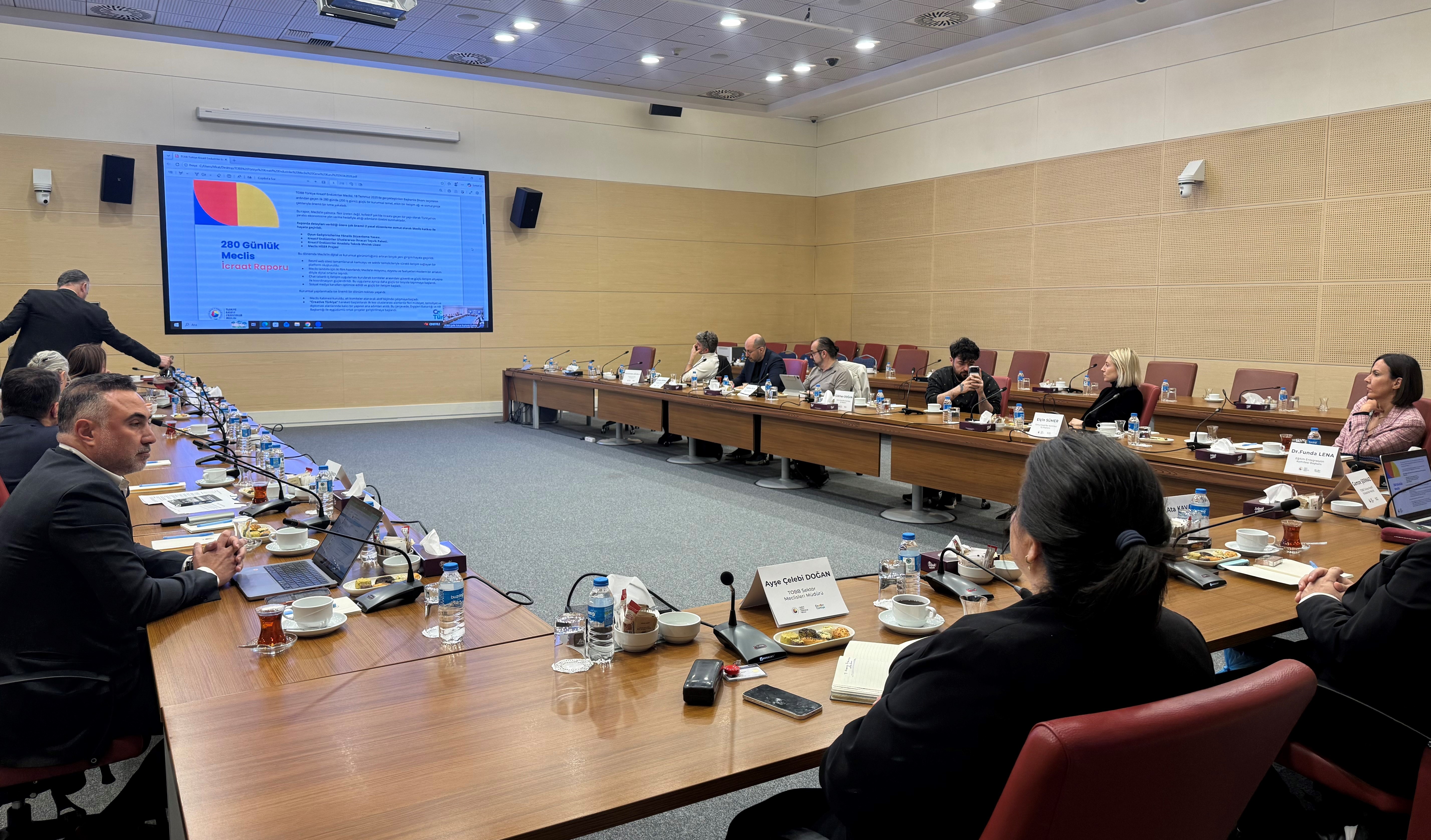 TOBB Türkiye Kreatif Endüstriler Meclisi Toplantısı, Kültürel Hizmetler ve Kreatif Endüstriler Sektörü Hizmet İhracatı Destekleri Toplantısı’nın ardından TOBB’da gerçekleşti.