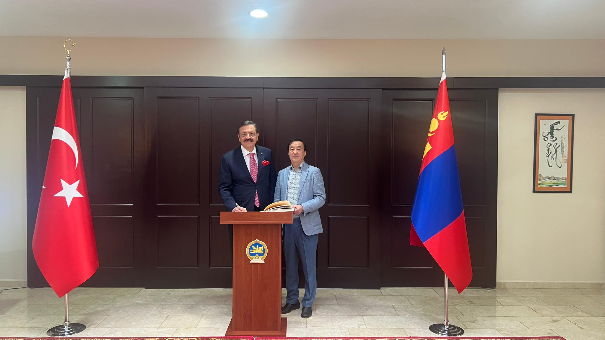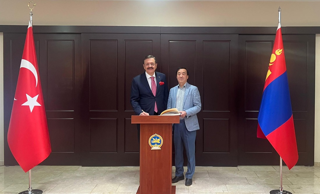 Türkiye Odalar ve Borsalar Birliği (TOBB) Başkanı M. Rifat Hisarcıklıoğlu, Moğolistan’nın Ankara Büyükelçisi Gombosuren Munkhbayar’ı ziyaret etti. Ziyarette, Türkiye-Moğolistan iktisadi ve ticari ilişkileri konuşuldu.