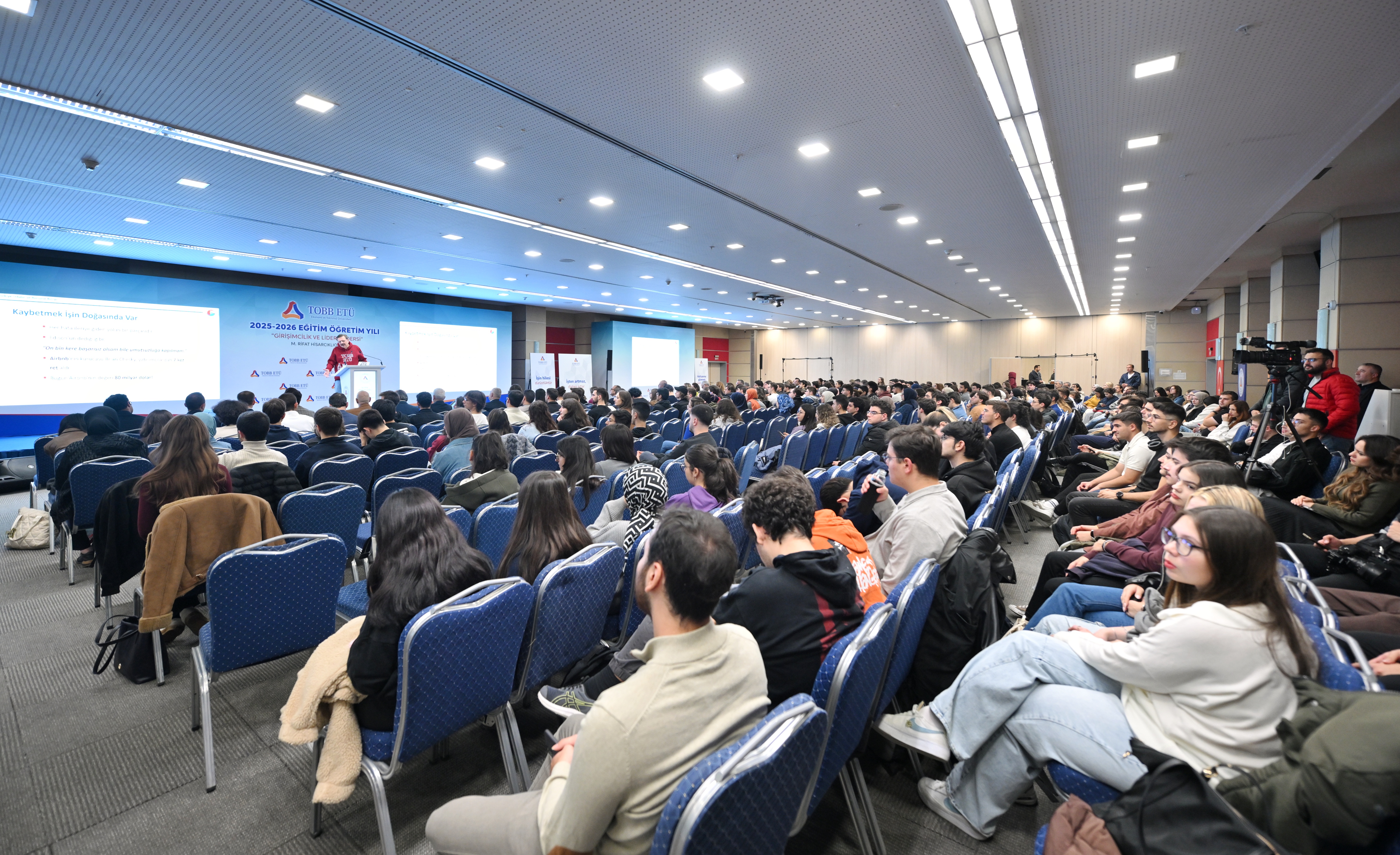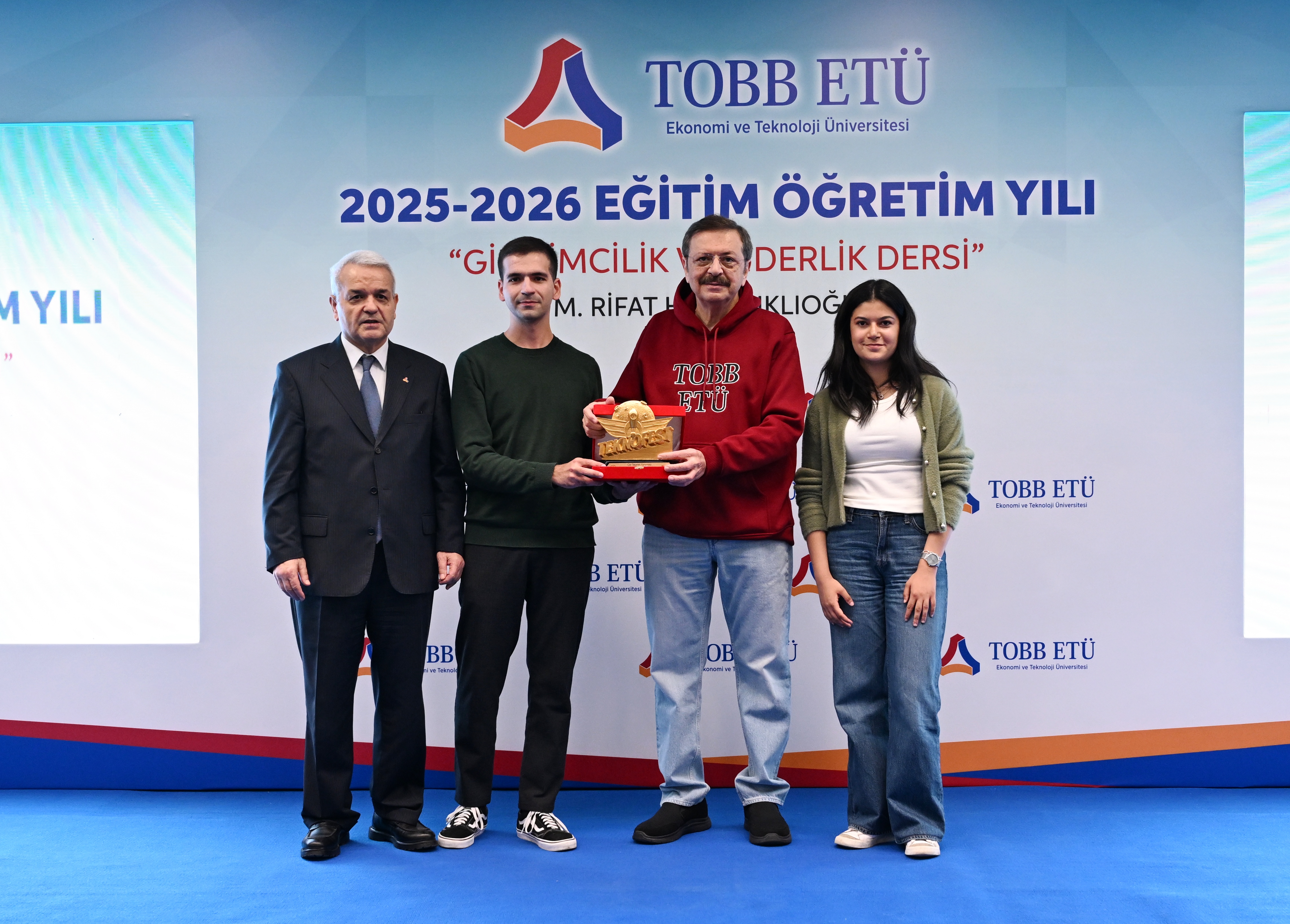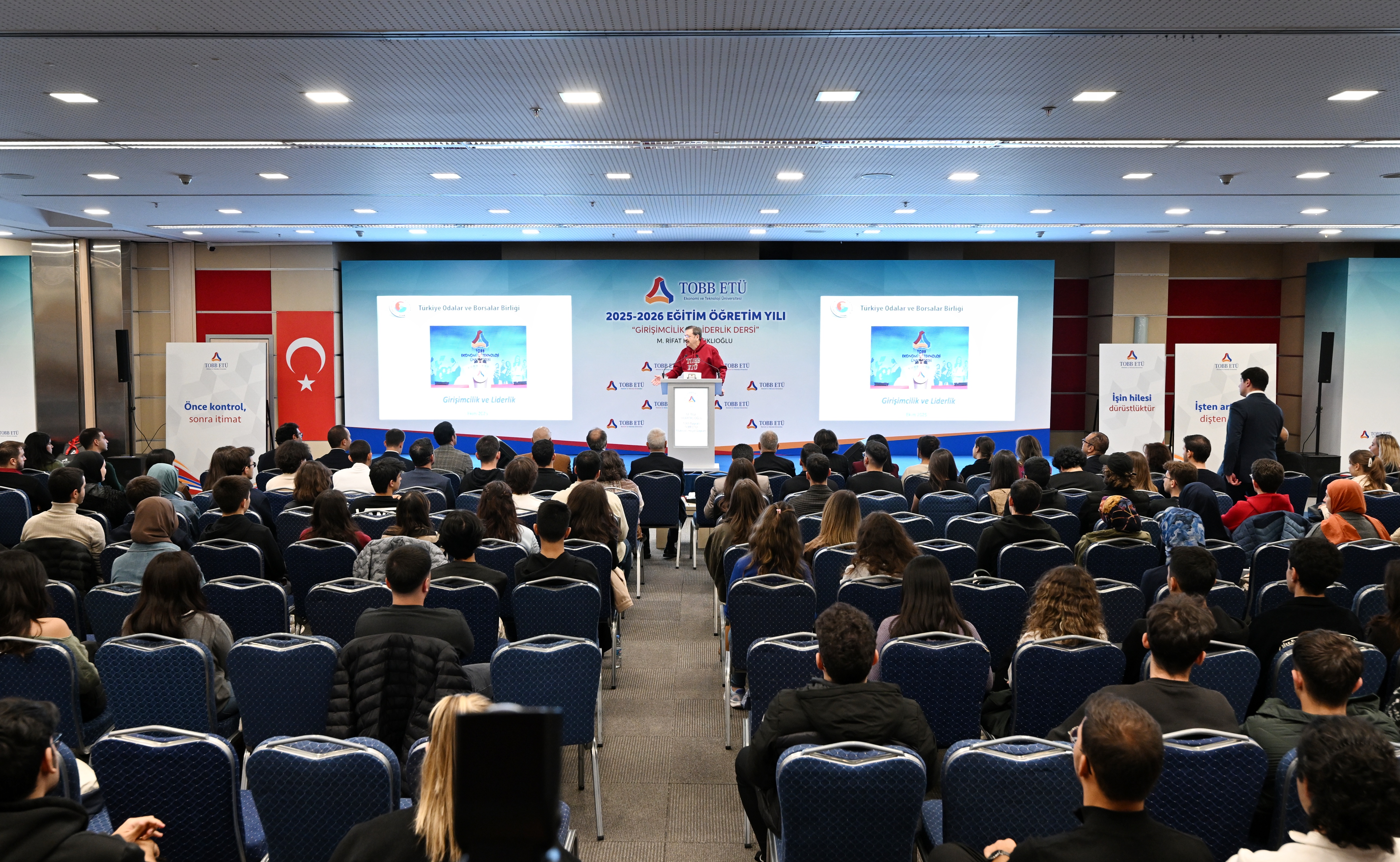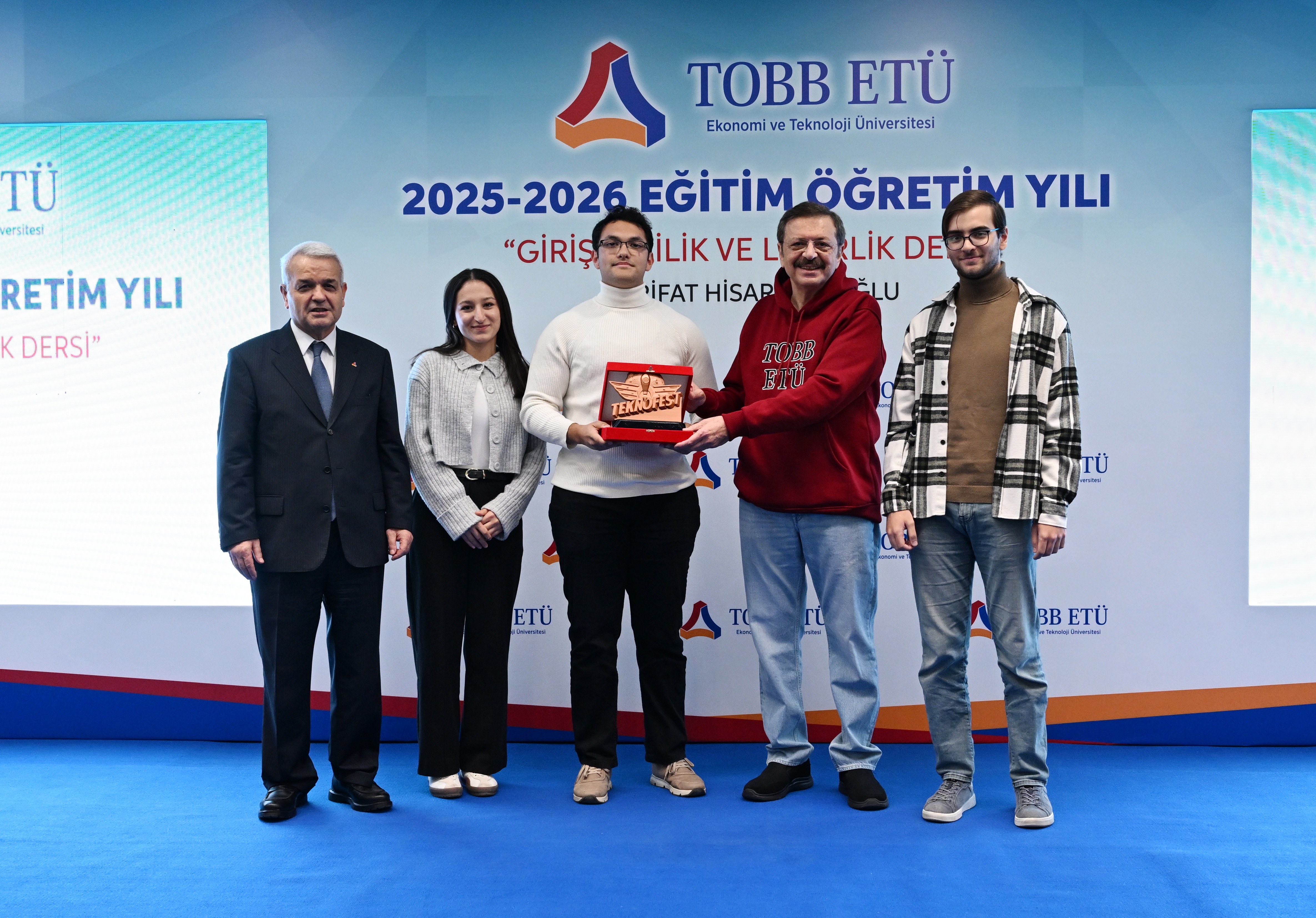 Öğrencilere girişimcilik ve liderlik konusunda görüşlerini aktaran TOBB Başkanı ve TOBB ETÜ Mütevelli Heyeti Başkanı M. Rifat Hisarcıklıoğlu, girişimcilik için öncelikle paraya değil, iyi bir fikre ve çok çalışmaya ihtiyaç olduğunu vurguladı. Yenidünyada girişimci olmak için gerekenleri; hayal kurmak, hedef koymak, çok çalışmak, yenilikçi olmak, değişim getirmek, ortaklık kültürüne değer vermek, iyi bir takım oluşturmak ve kaybettiğinde pes etmemek olarak açıklayan Hisarcıklıoğlu, yola çıkarken herkese ilkeleri olmasını tavsiye etti. Kendi ilkelerini: “İşten Artmaz, Dişten Artar",