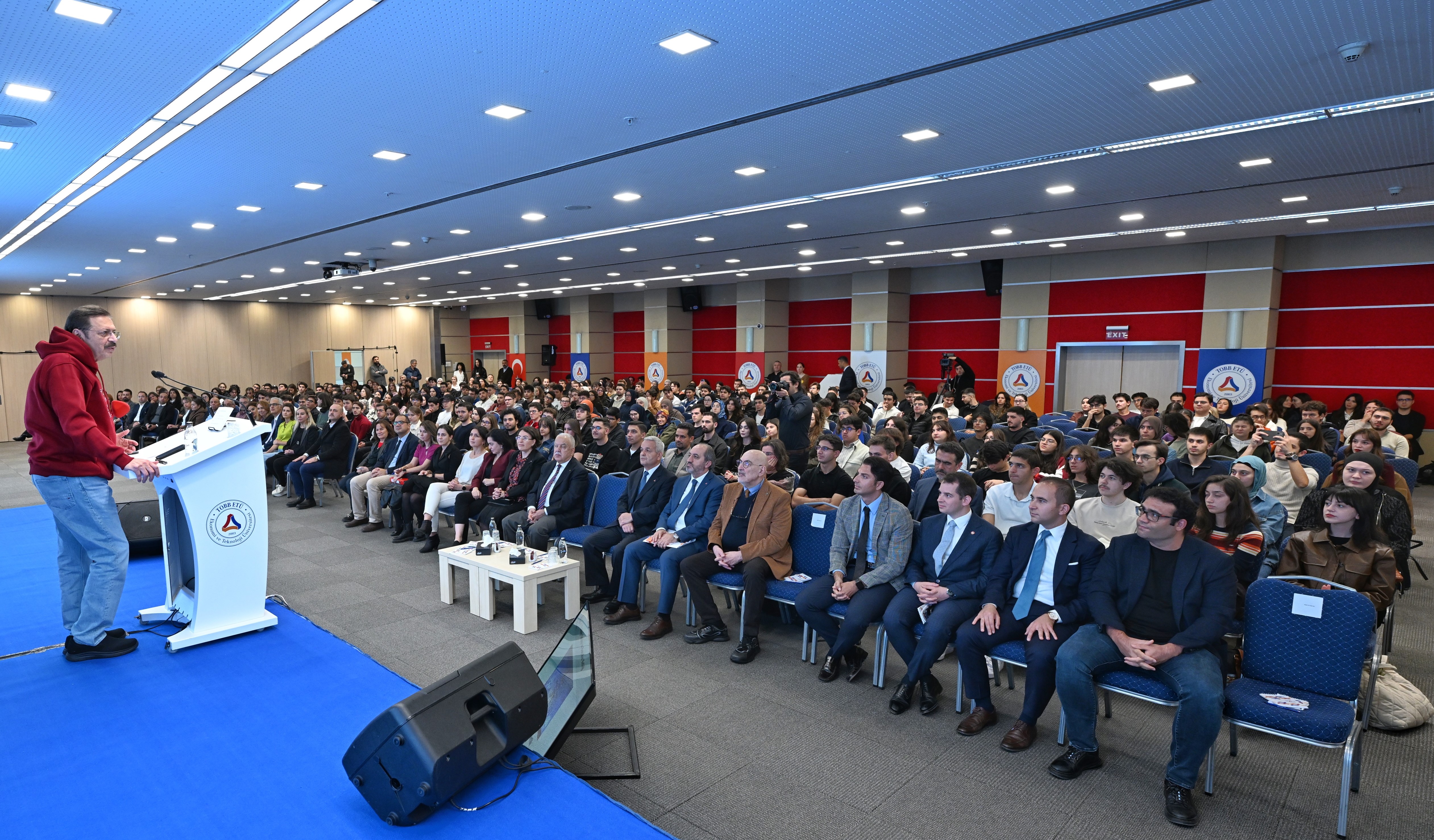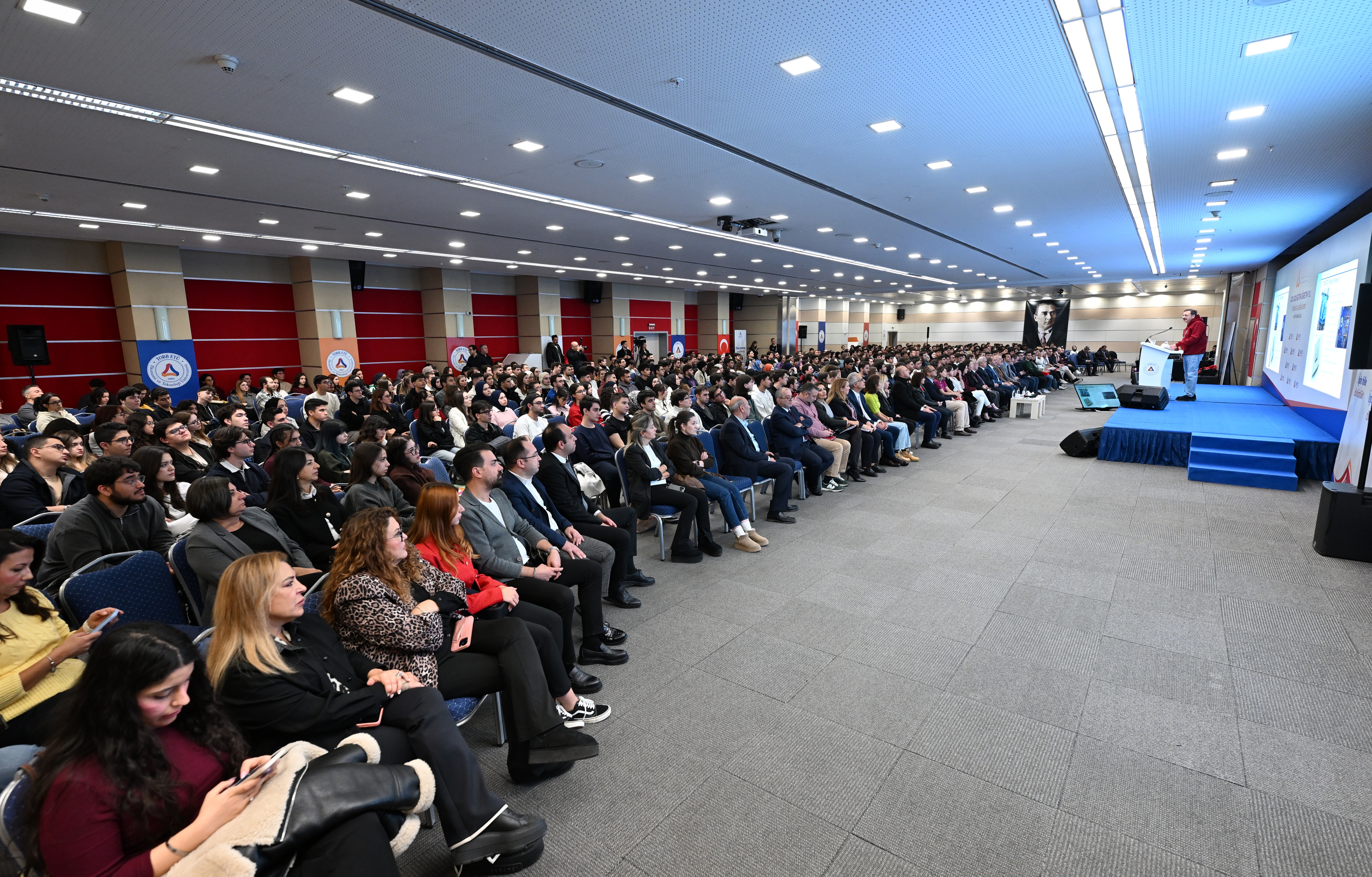 Kısa zamanda önemli mesafeler kat ettiklerini belirten Hisarcıklıoğlu şunları söyledi: “Kurduğumuz TOBB ETÜ Teknoloji Merkezi, 6 farklı mühendislik disiplinin bir arada bulunduğunu dünyadaki tek merkez.^Bu merkezde faaliyete geçirdiğimiz TOBB ETÜ Hidro, 2,5 MW’lık kapasitesi ile dünyanın en büyük su türbin tasarım ve test merkezi oldu. Yine Türkiye’nin ilk kuantum bilgisayarını, QuanT’ı yaptık ve Türkiye’yi kuantum bilgisayara sahip dünyadaki 14 ülkeden biri haline getirdik. Milli otomobilimiz, ülkemizin gururu Togg’un tüm ar-ge’si ve teknolojisi üniversitemizde geliştiriliyor.