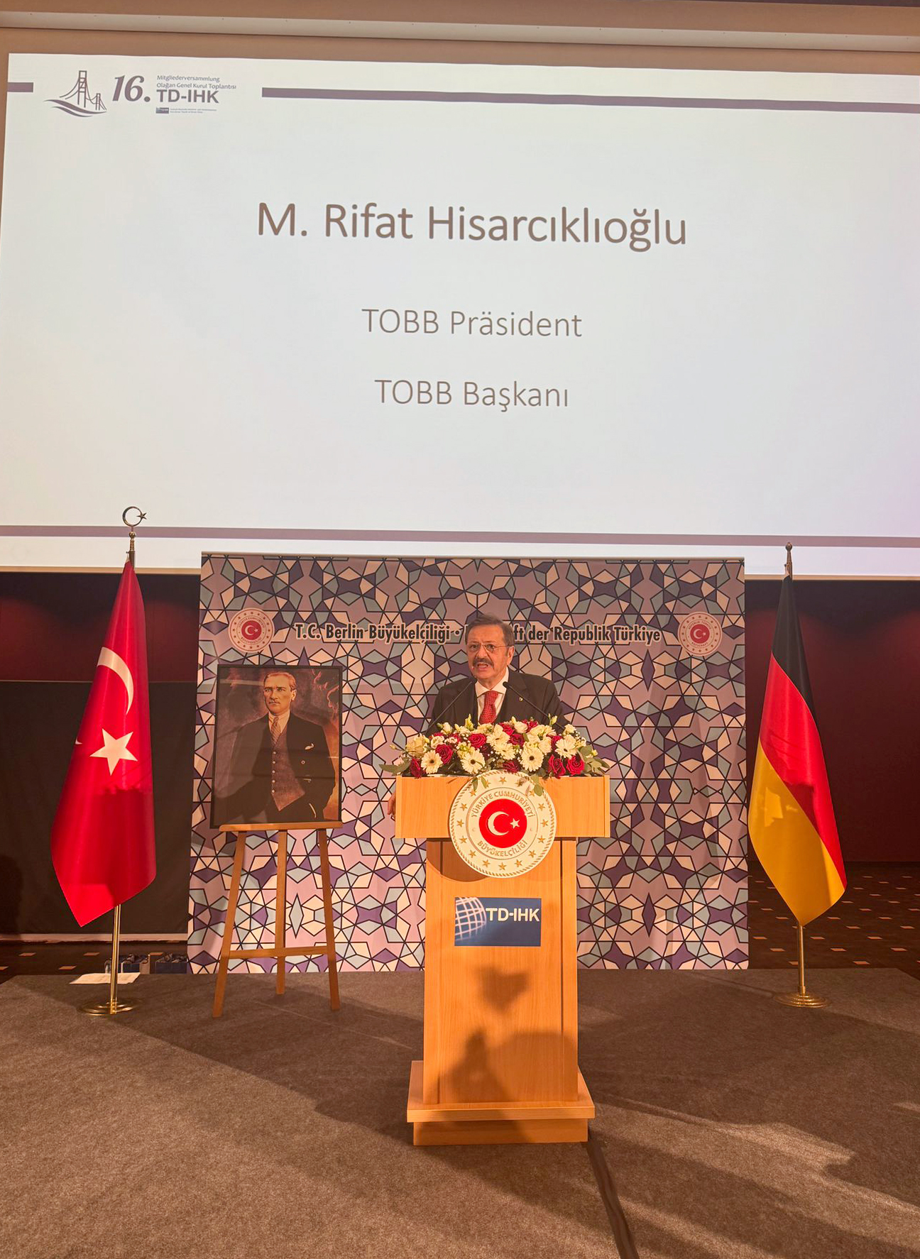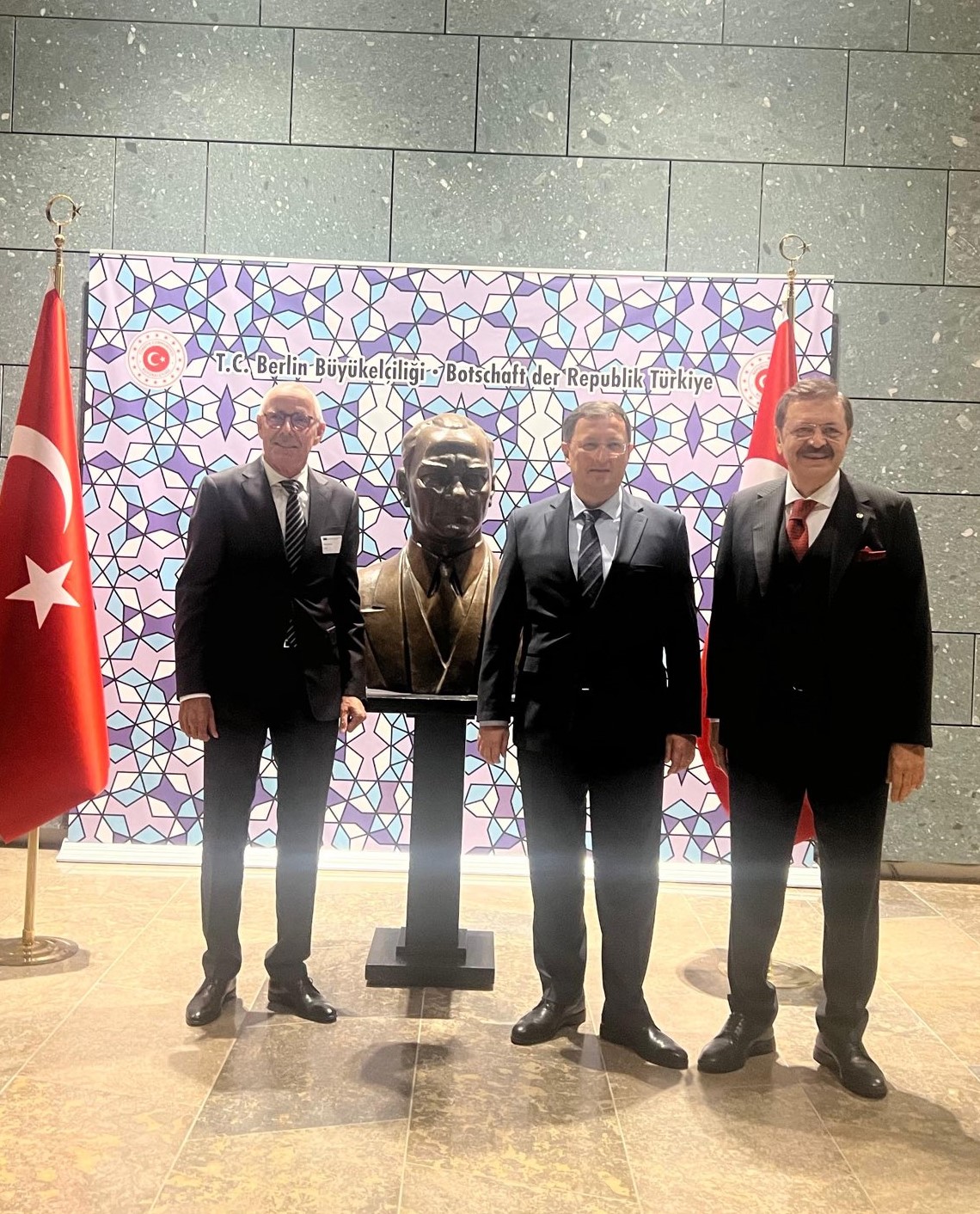 Hisarcıklıoğlu, Berlin programı kapsamında Türkiye Cumhuriyeti Berlin Büyükelçisi Gökhan Turan ile bir araya gelerek, Türkiye-Almanya iktisadi ilişkilerini değerlendirdi.