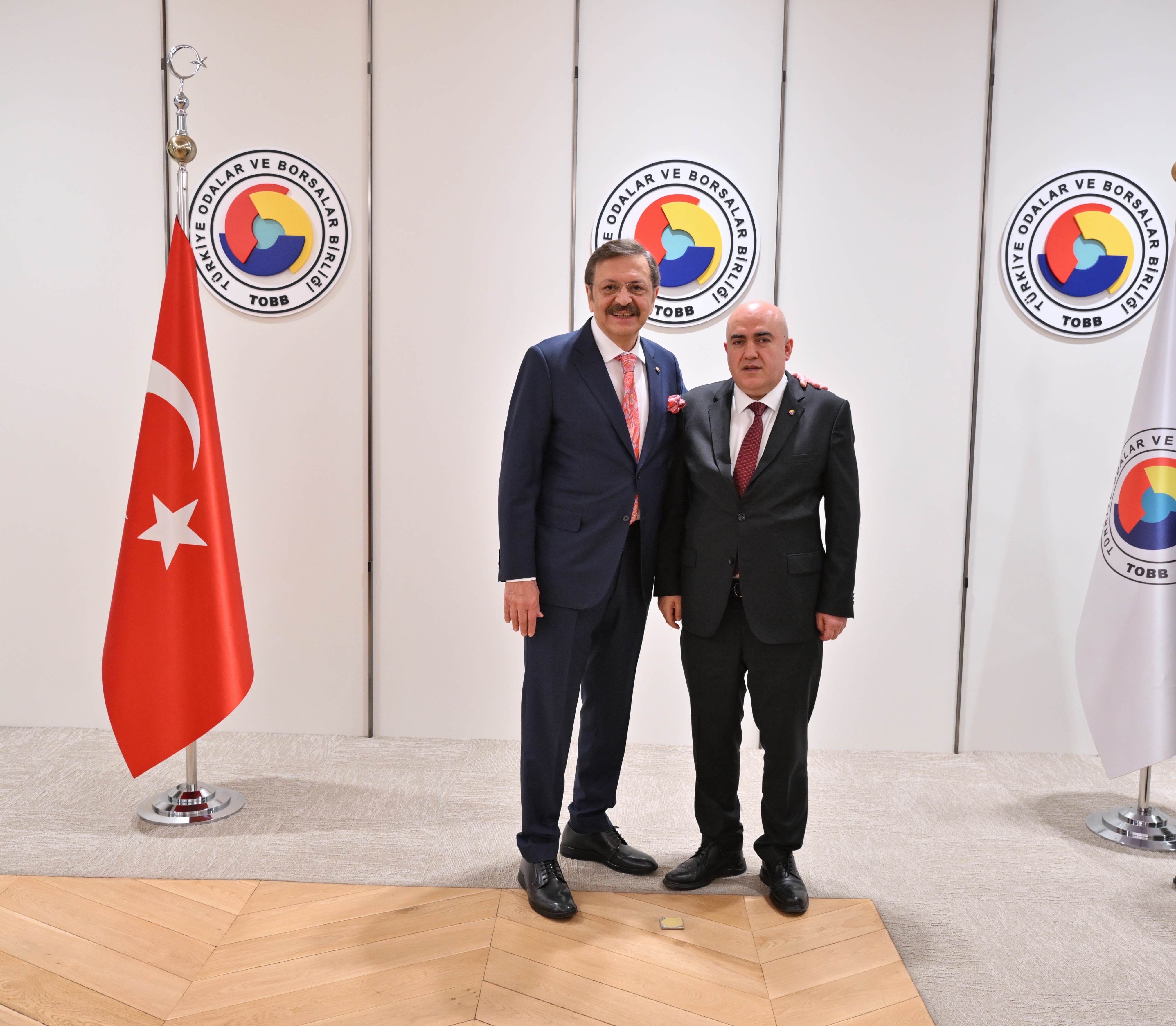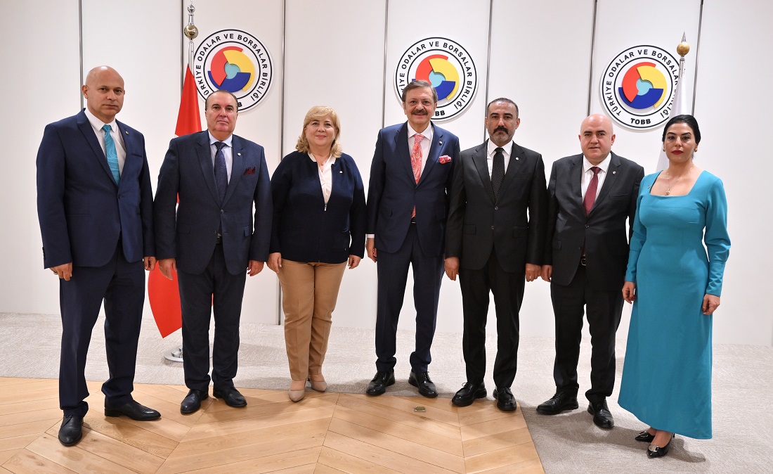 Türkiye Odalar ve Borsalar Birliği (TOBB) Başkanı M. Rifat Hisarcıklıoğlu, TOBB Yönetim Kurulu Üyesi M. Tuncay Yıldırım, Basın Yayın Komisyonu Başkanı Semra Tozaraydın, Raportör Mustafa Sezer, Sözcü Görkem Aksoy, üyeler M. Nadir Delikanlı ve Mehmet Ergün’ü makamında kabul etti.