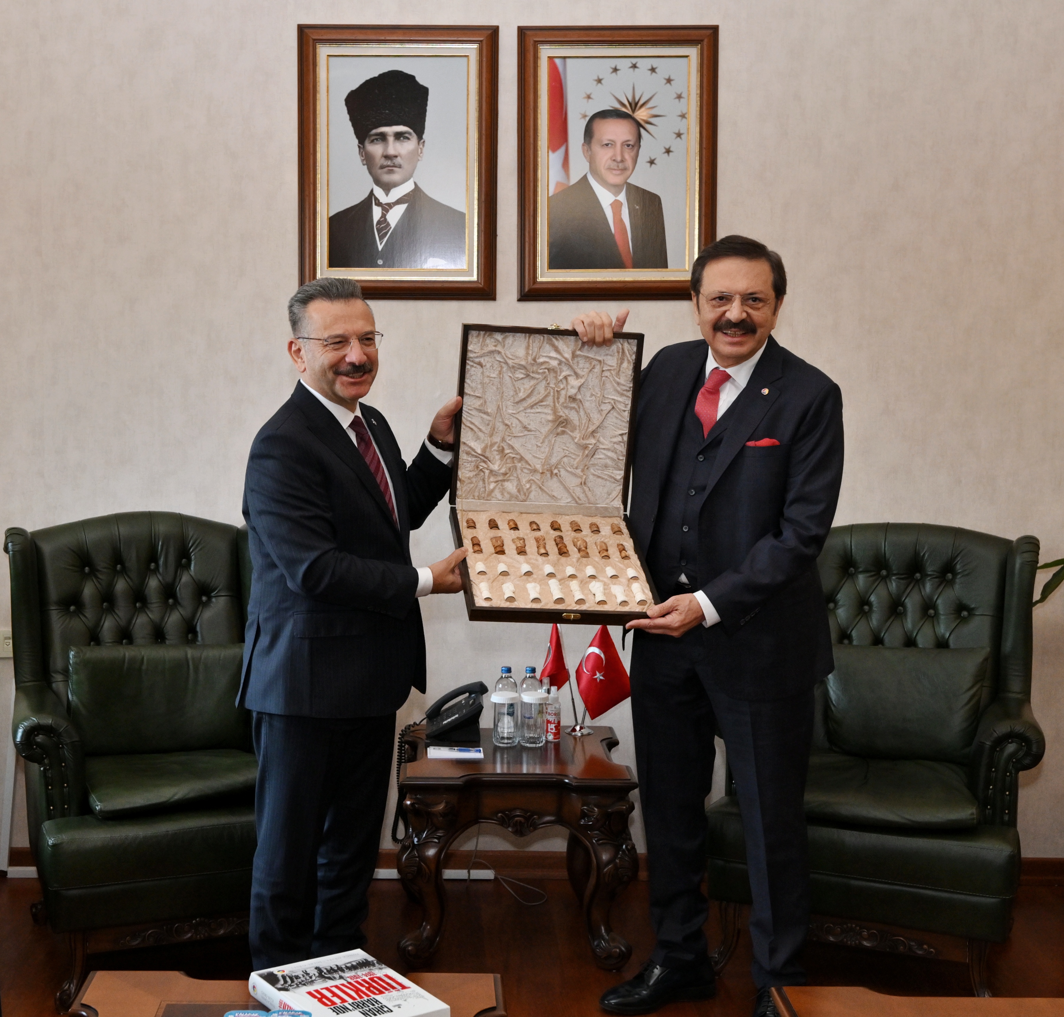 Türkiye Odalar ve Borsalar Birliği (TOBB) Başkanı M. Rifat Hisarcıklıoğlu, Eskişehir Valisi Hüseyin Aksoy'u makamında ziyaret etti.