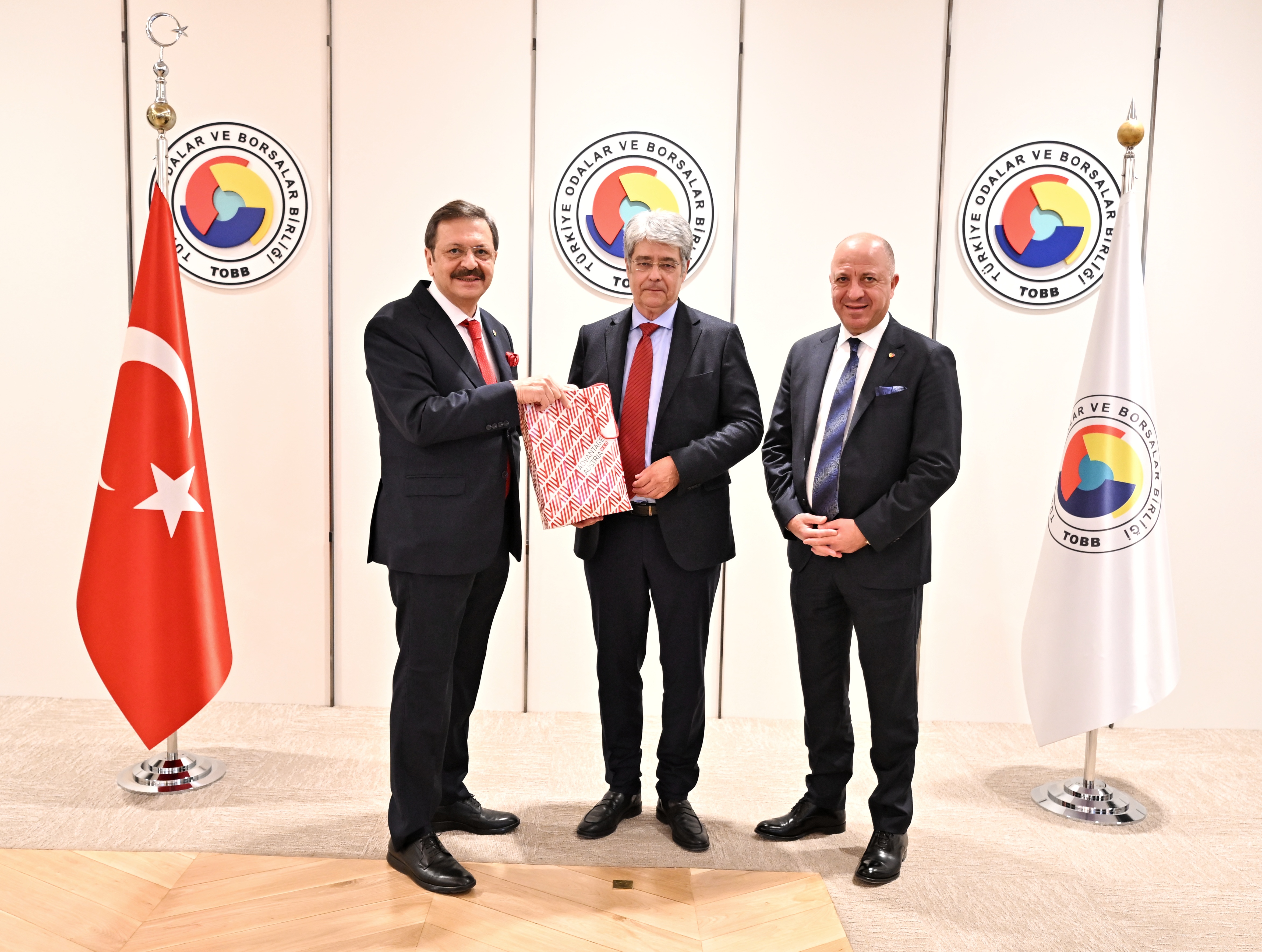 Türkiye Odalar ve Borsalar Birliği (TOBB) Başkanı M. Rifat Hisarcıklıoğlu, Avusturya Ekonomi Odası Başkan Yardımcısı Wolfgang Hesoun ve beraberindeki heyeti TOBB İkiz Kuleler’de ağırladı. Görüşmede, Türkiye - Avusturya iktisadi ve ticari ilişkileri ele alındı.