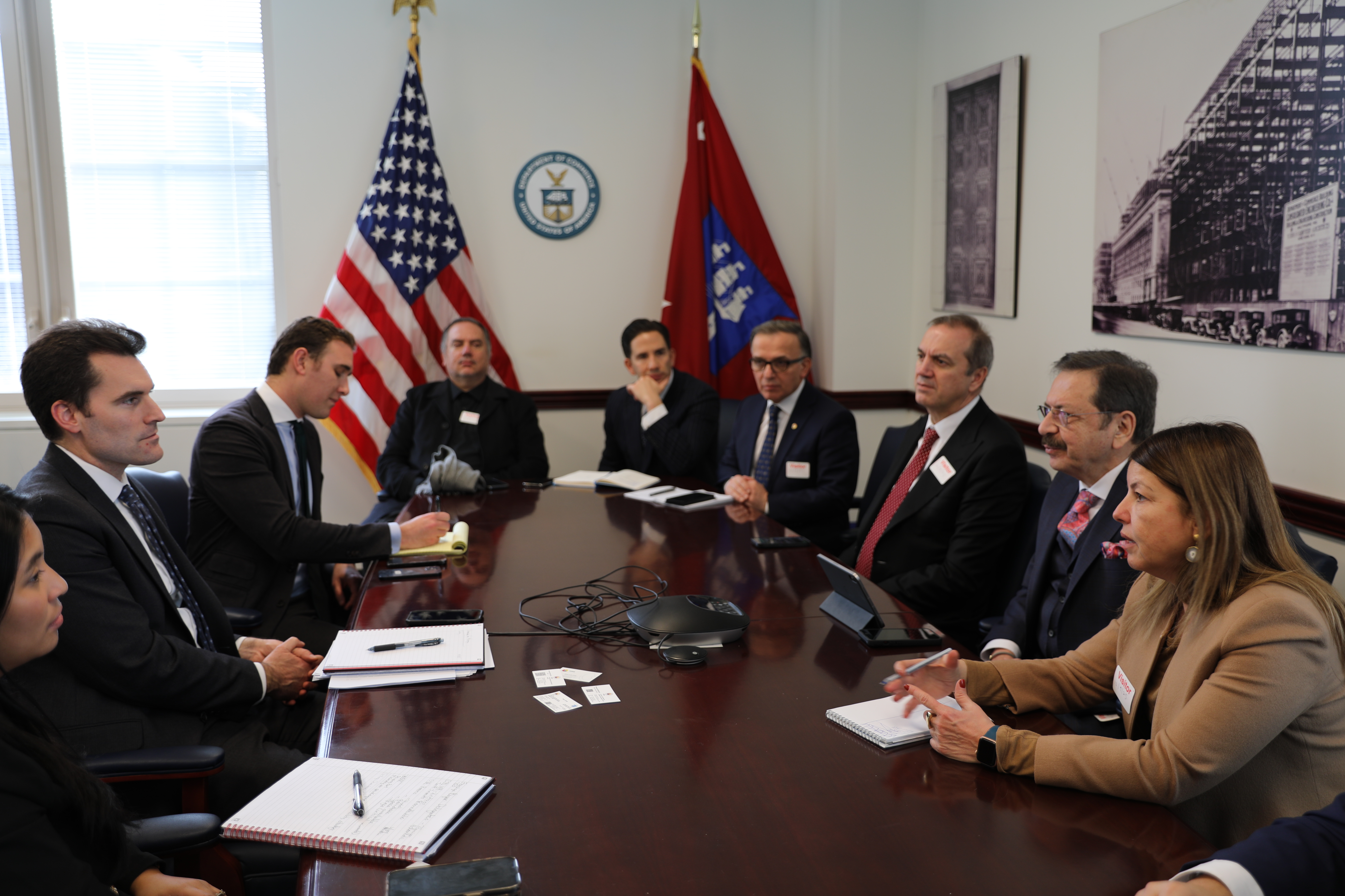 Türkiye Odalar ve Borsalar Birliği (TOBB) Başkanı M. Rifat Hisarcıklıoğlu, ABD programı kapsamında ABD Ticaret Bakanlığı Müsteşarı William Kimmitt ile Türkiye - ABD iktisadi ve ticari ilişkilerini konuştu.