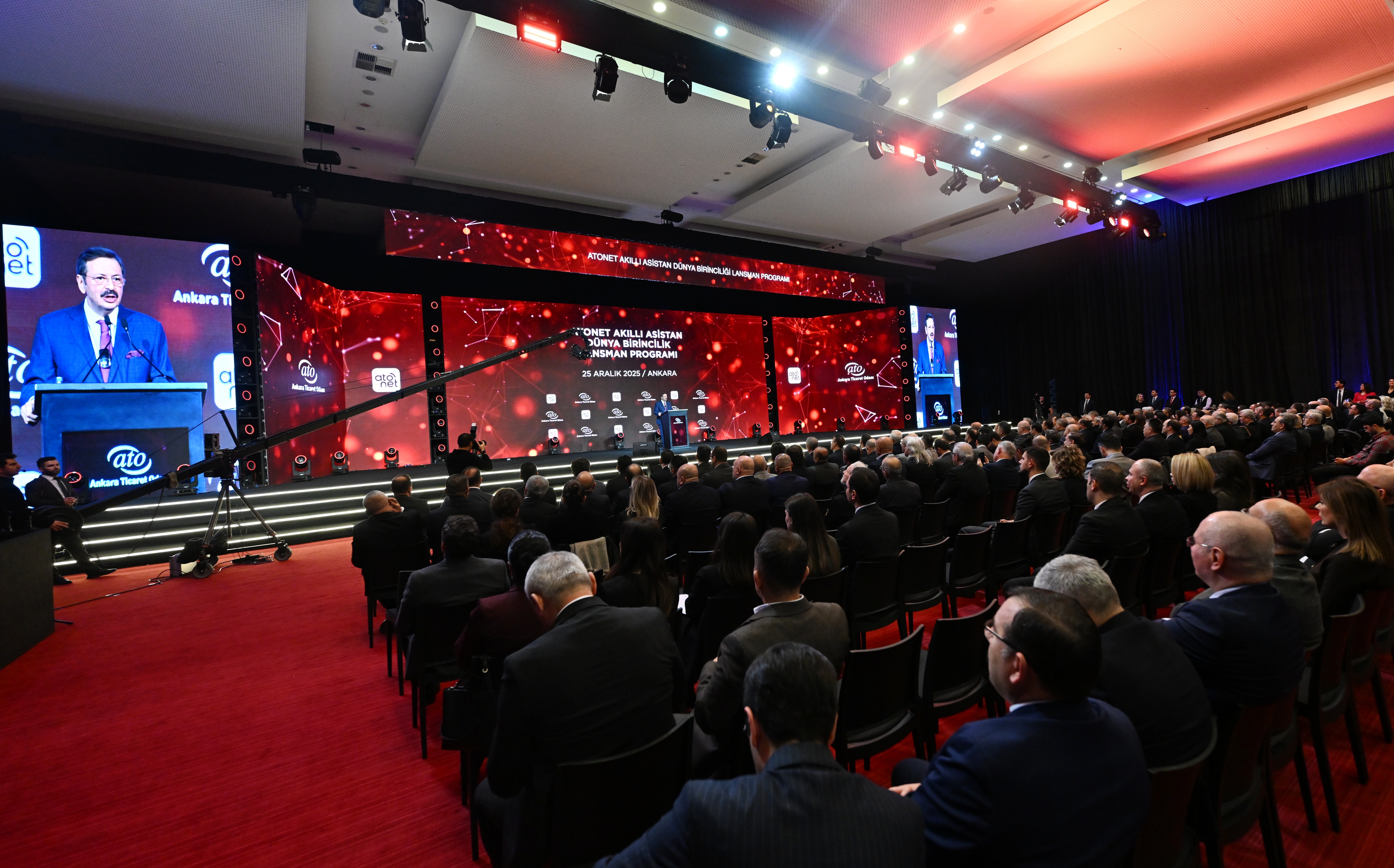 Ankara Ticaret Odası'nın üyelerinin iş ve işlemlerini kolaylaştırmak amacıyla hayata geçirdiği "ATONET Akıllı Asistan" projesinin lansmanı Cumhurbaşkanı Yardımcısı Cevdet Yılmaz ve TOBB Başkanı M. Rifat Hisarcıklıoğlu’nun katılımıyla ATO Başkanı Gürsel Baran’ın ev sahipliğinde gerçekleştirildi.