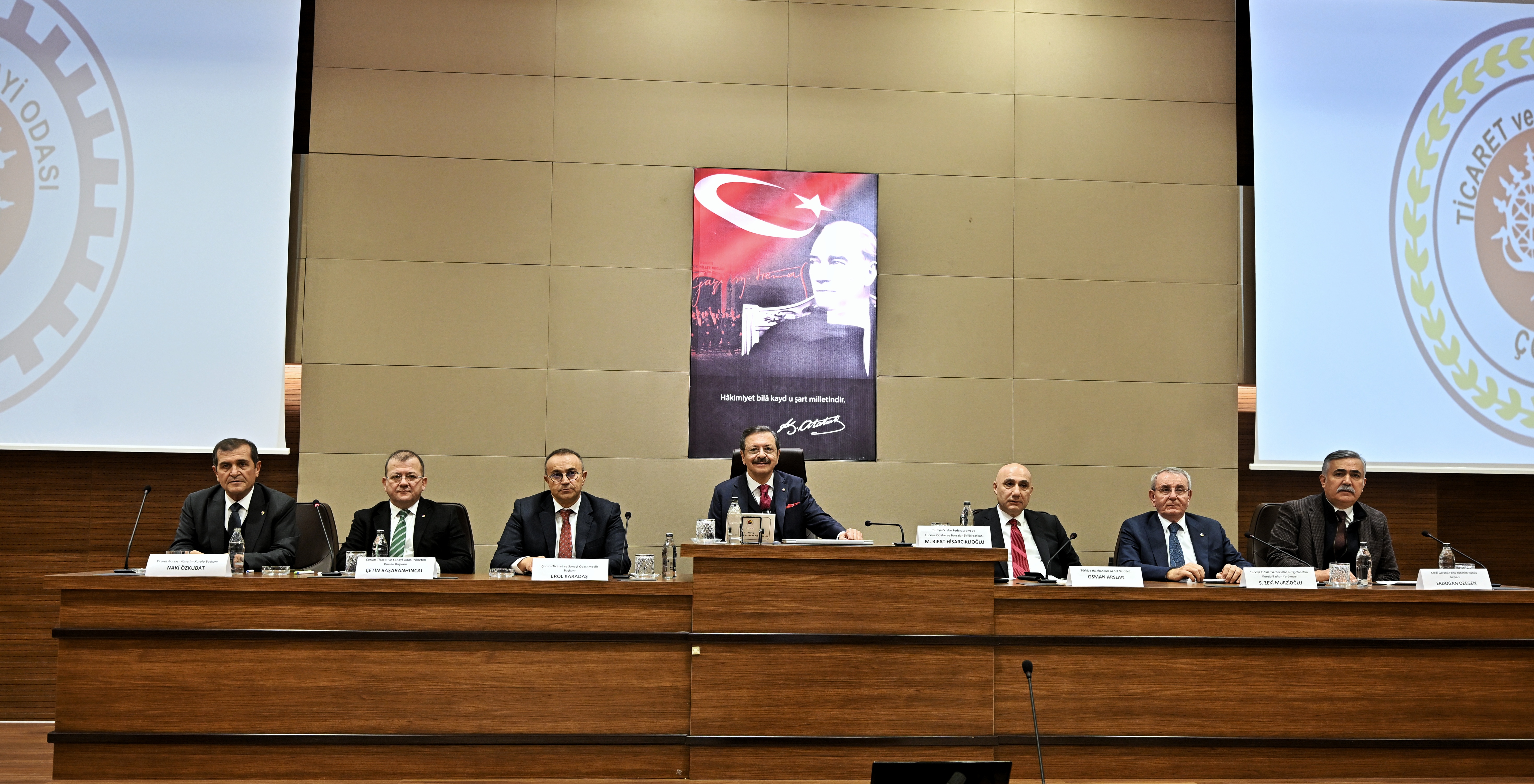 Türkiye Odalar ve Borsalar Birliği (TOBB) Başkanı M. Rifat Hisarcıklıoğlu, Çorum Ticaret ve Sanayi Odası’nın ev sahipliğinde Halkbank Genel Müdürü Osman Arslan’ın katılımıyla gerçekleştirilen istişare toplantısına katılarak meclis üyeleri ile bir araya geldi.