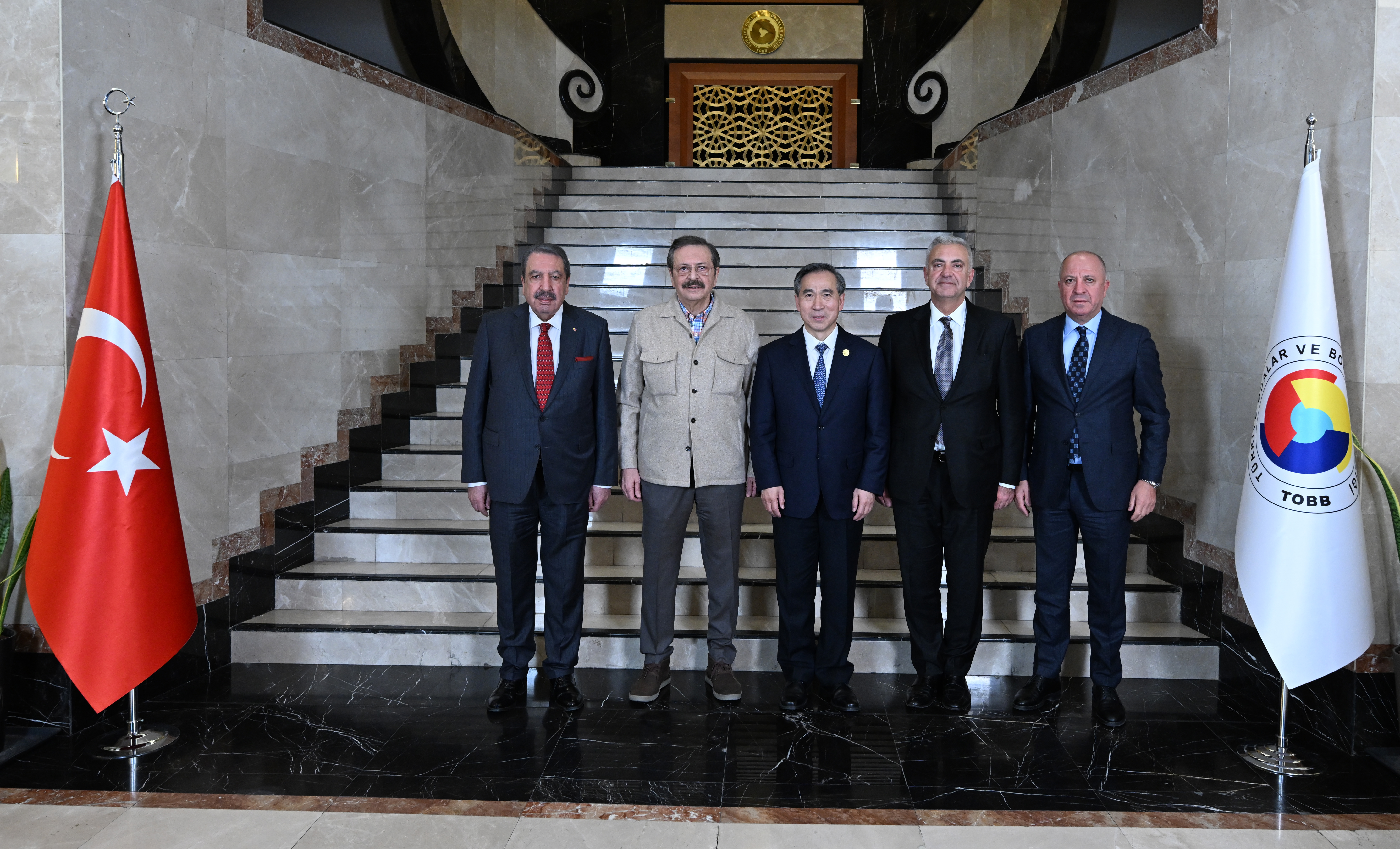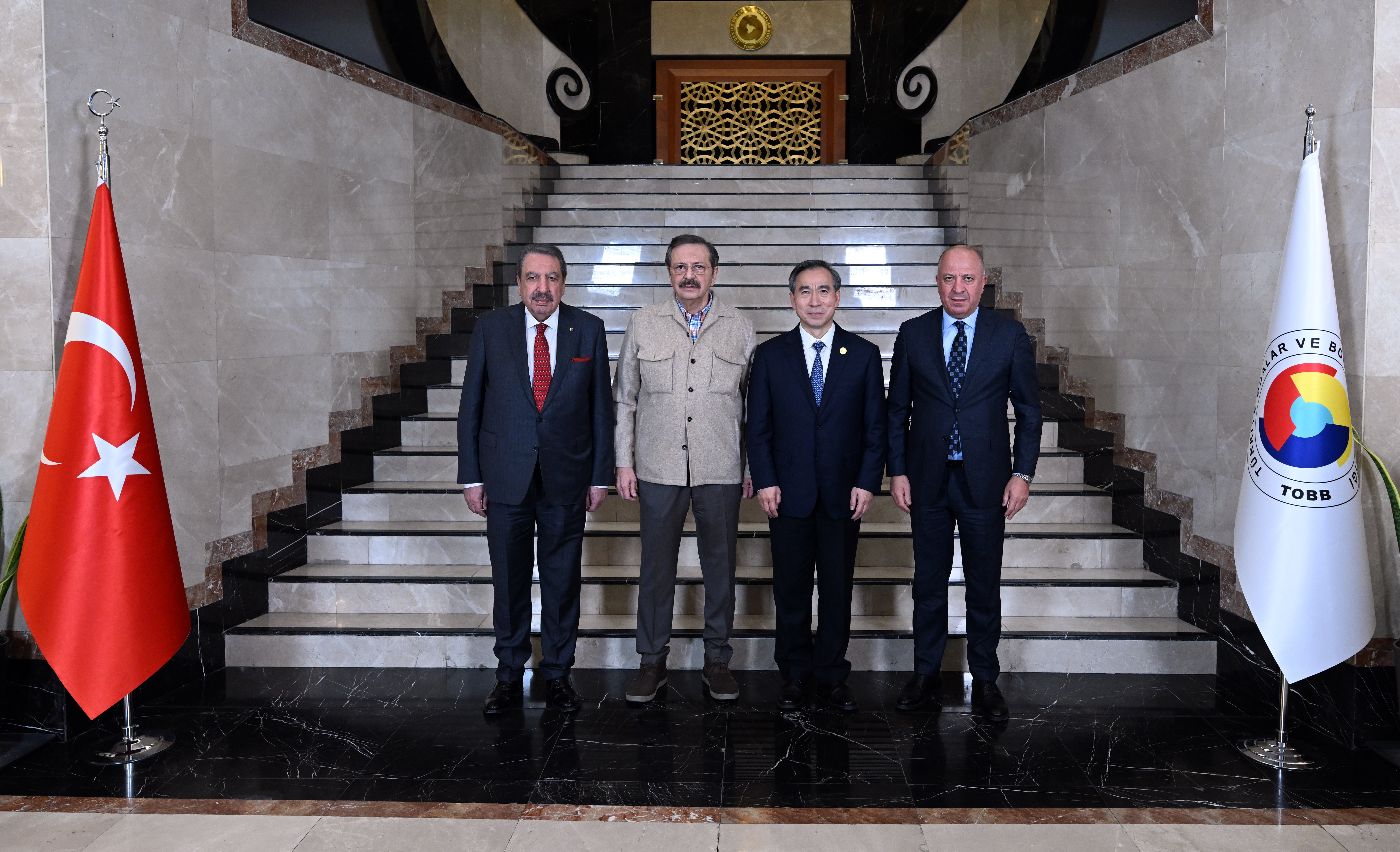 Türkiye Odalar ve Borsalar Birliği (TOBB) Başkanı M. Rifat Hisarcıklıoğlu, Çin Uluslararası Ticareti Geliştirme Konseyi (CCPIT) ve Çin Uluslararası Ticaret Odası Başkanı Ren Hongbin ve beraberindeki heyetle TOBB İkiz Kuleler’de bir araya geldi. Görüşmede, Türkiye - Çin iktisadi ve ticari ilişkileri ile iş birliği fırsatları değerlendirildi.