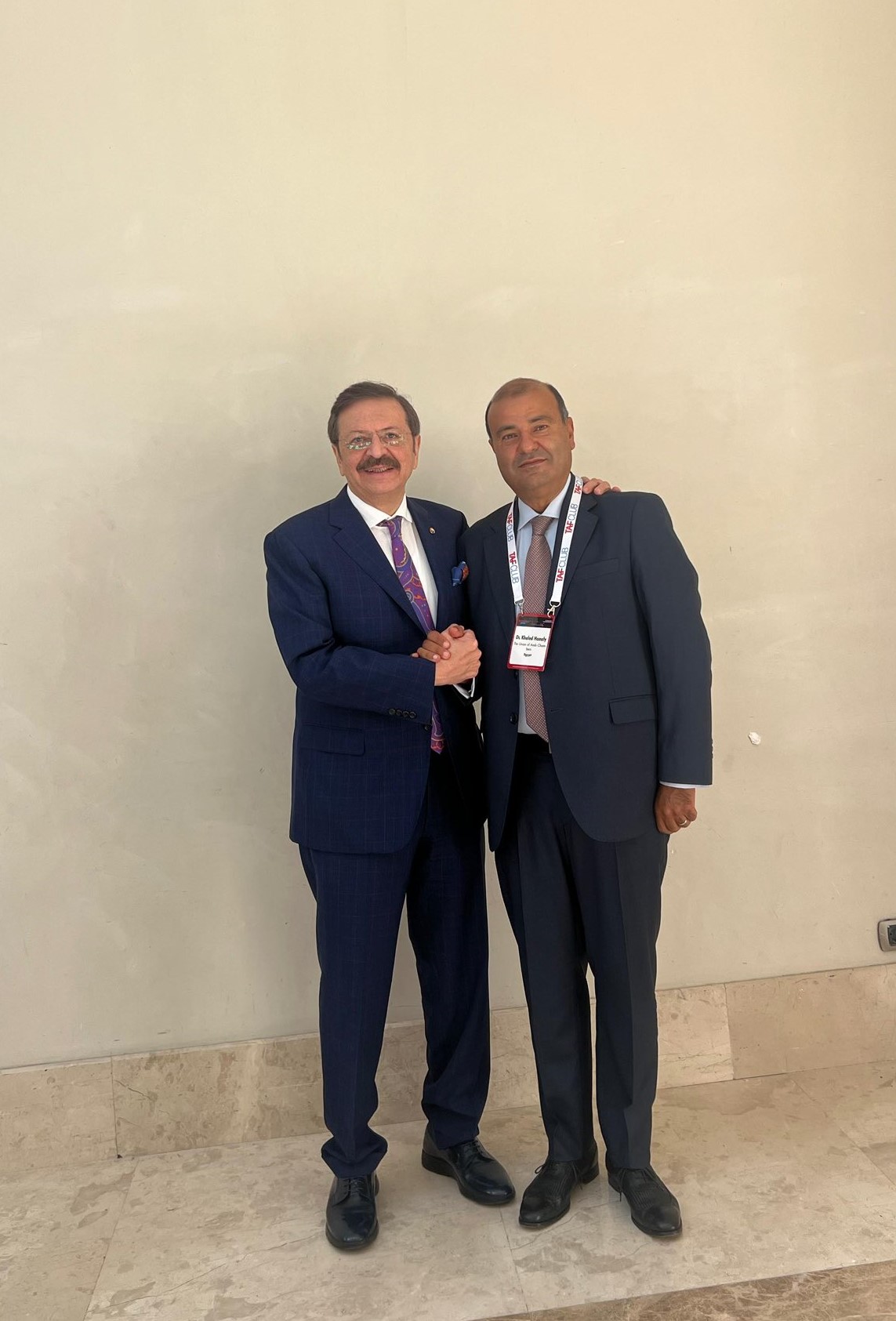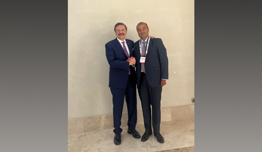 M. Rifat Hisarcıklıoğlu, President of the Union of Chambers and Commodity Exchanges of Türkiye (TOBB), met with Dr. Khaled Hanefi, Secretary General of the Arab Chambers Union, at the 16th Turkish-Arab Economic Forum (TAF). The meeting focused on the activities of the Turkish-Arab Joint Chamber of Commerce.