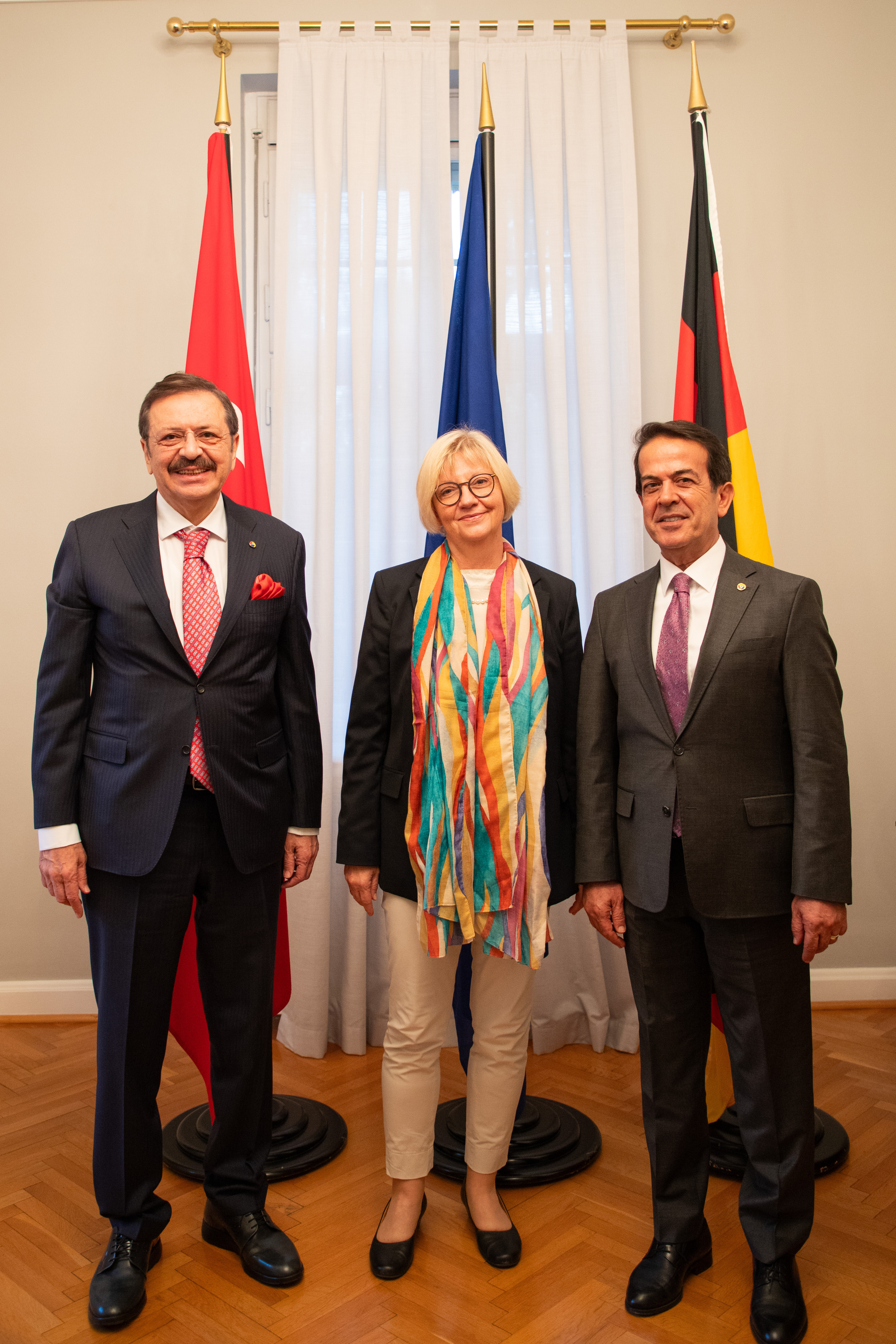 M. Rifat Hisarcıklıoğlu, President of the Union of Chambers and Commodity Exchanges of Türkiye (TOBB), met with Sibylle Katharina Sorg, German Ambassador to Ankara. The meeting focused on economic and trade relations between Türkiye and Germany.