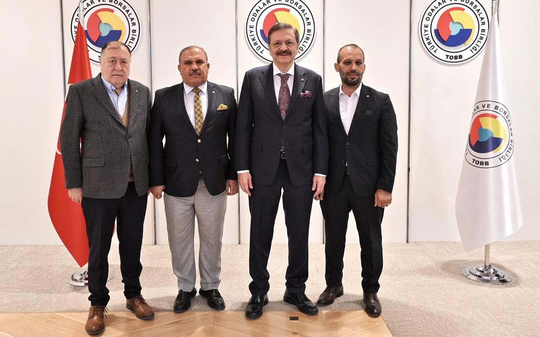 The Union of Chambers and Commodity Exchanges of Türkiye (TOBB) President M. Rifat Hisarcıklıoğlu welcomed Reyhanlı Chamber of Commerce and Industry Board of Directors President Necmeddin Zaroğlu and Board Member Hüseyin Dolğun.