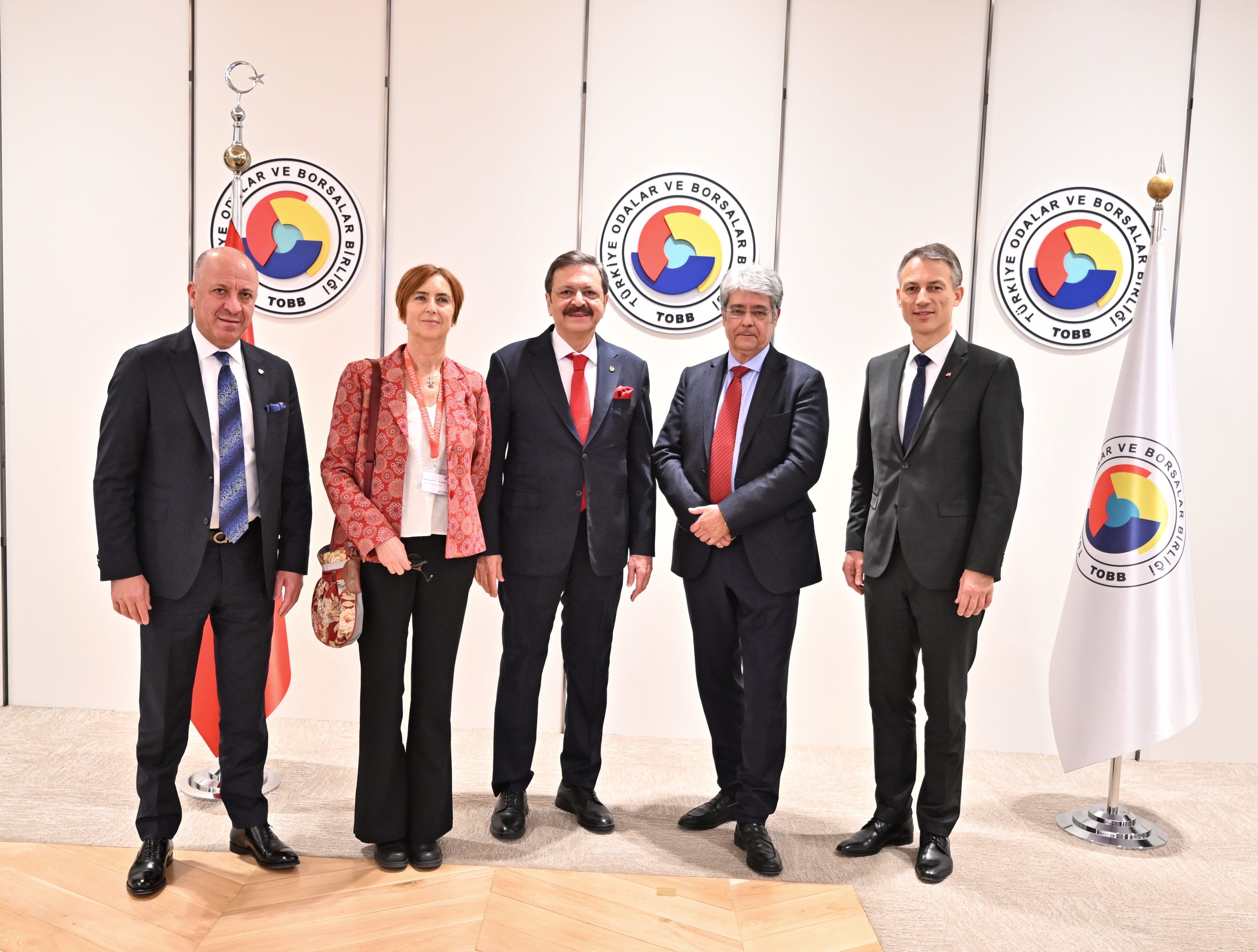 M. Rifat Hisarcıklıoğlu, President of the Union of Chambers and Commodity Exchanges of Türkiye (TOBB), welcomed Wolfgang Hesoun, Vice President of the Austrian Economic Chamber, and his delegation at the TOBB Twin Towers. The meeting focused on economic and trade relations between Türkiye and Austria.