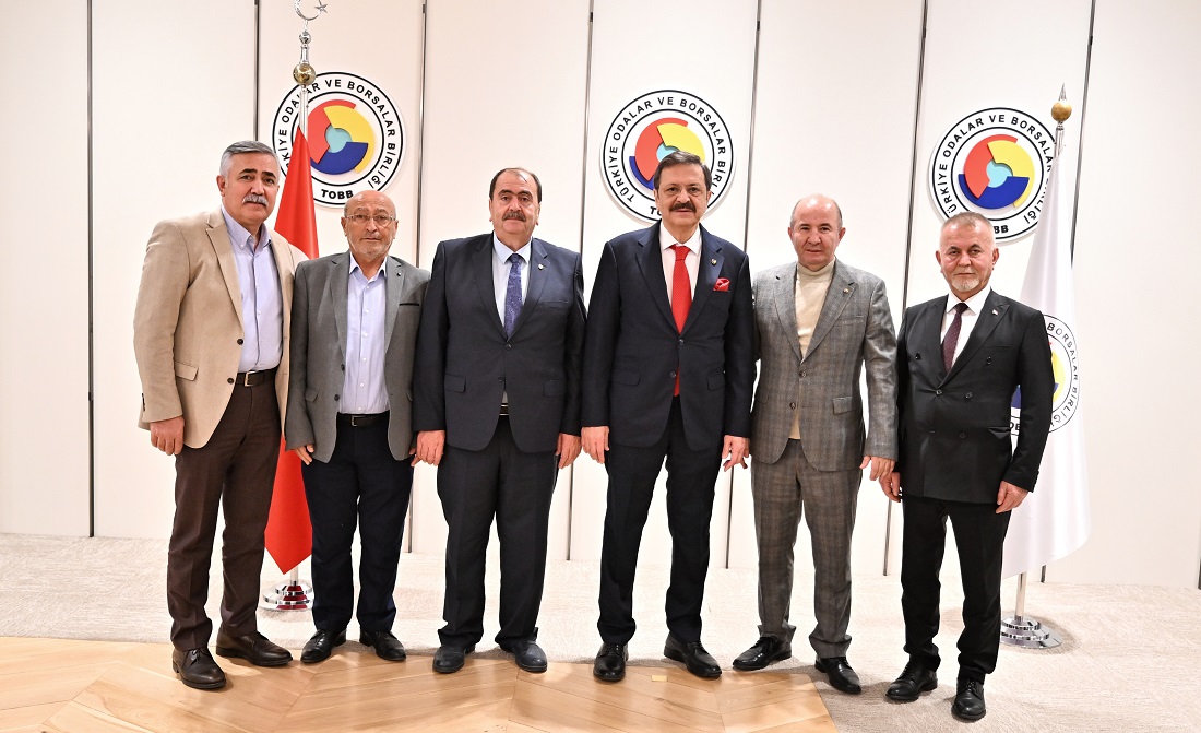 The President of the Union of Chambers and Commodity Exchanges of Türkiye (TOBB), M. Rifat Hisarcıklıoğlu, received Polatlı Chamber of Commerce Board Chairman Ulvi Sakarya, Bucak Chamber of Commerce and Industry Board Chairman Hasan Yalçın Meçikoğlu, Assembly Chairman Süleyman Duran, and Board Member Hasan Kurt at his office.