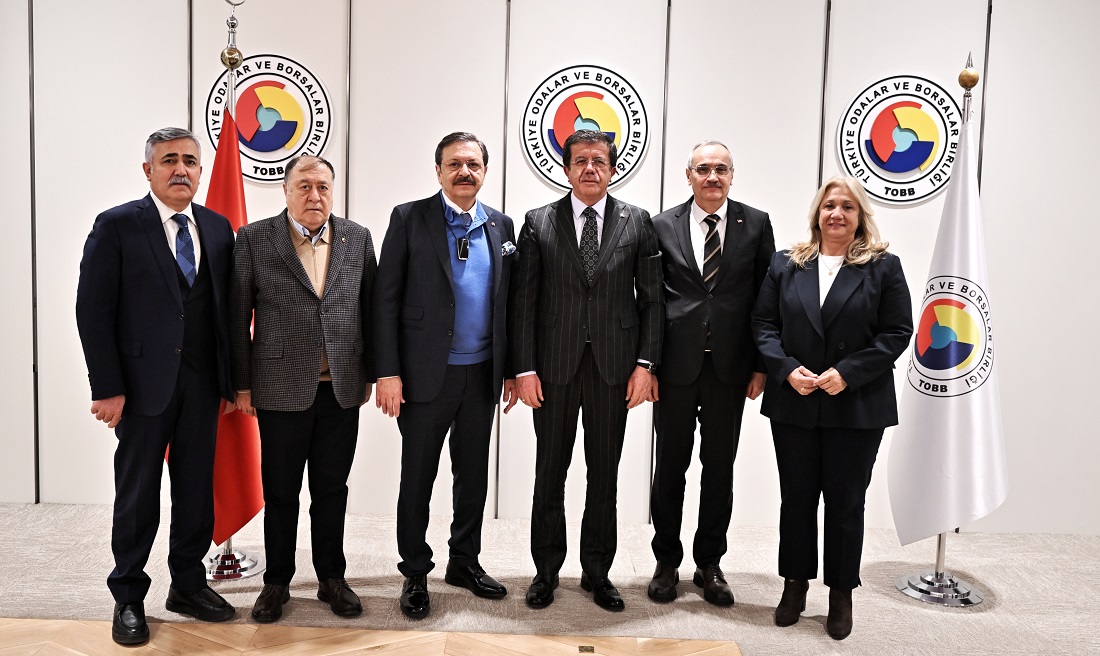 M. Rifat Hisarcıklıoğlu, President of the Union of Chambers and Commodity Exchanges of Türkiye (TOBB), hosted Nihat Zeybekci, Deputy Chairman of the AK Party and Head of Economic Affairs, and Cenap Aşçı and İlknur Denizli, Deputy Heads of Economic Affairs, at the TOBB Twin Towers.
