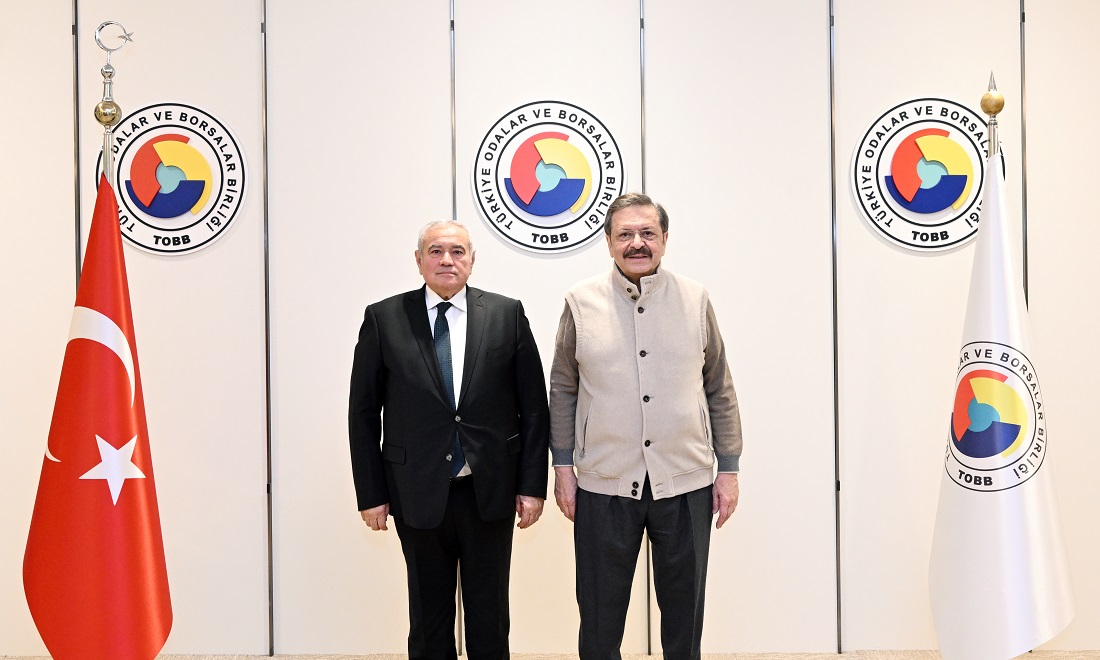 M. Rifat Hisarcıklıoğlu, President of the Union of Chambers and Commodity Exchanges of Türkiye (TOBB), welcomed Davut Çetin, former member of the TOBB Board of Directors, at the TOBB Twin Towers.