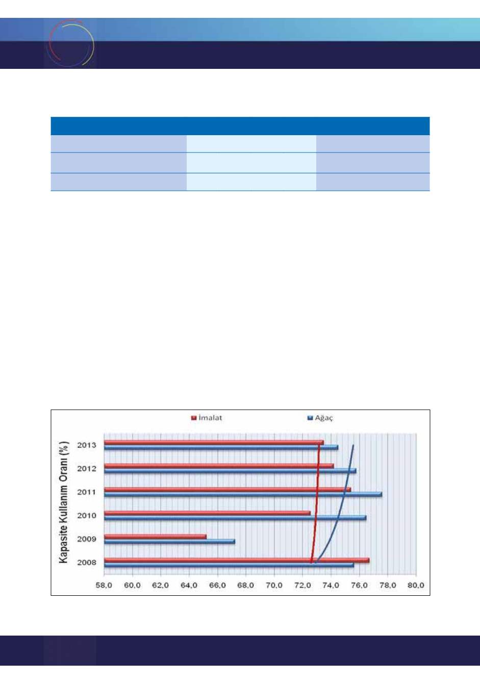 2010 yılında hafif toparlanma görülen ağaç ürünleri sektöründe kapasite kullanım oranı 2011