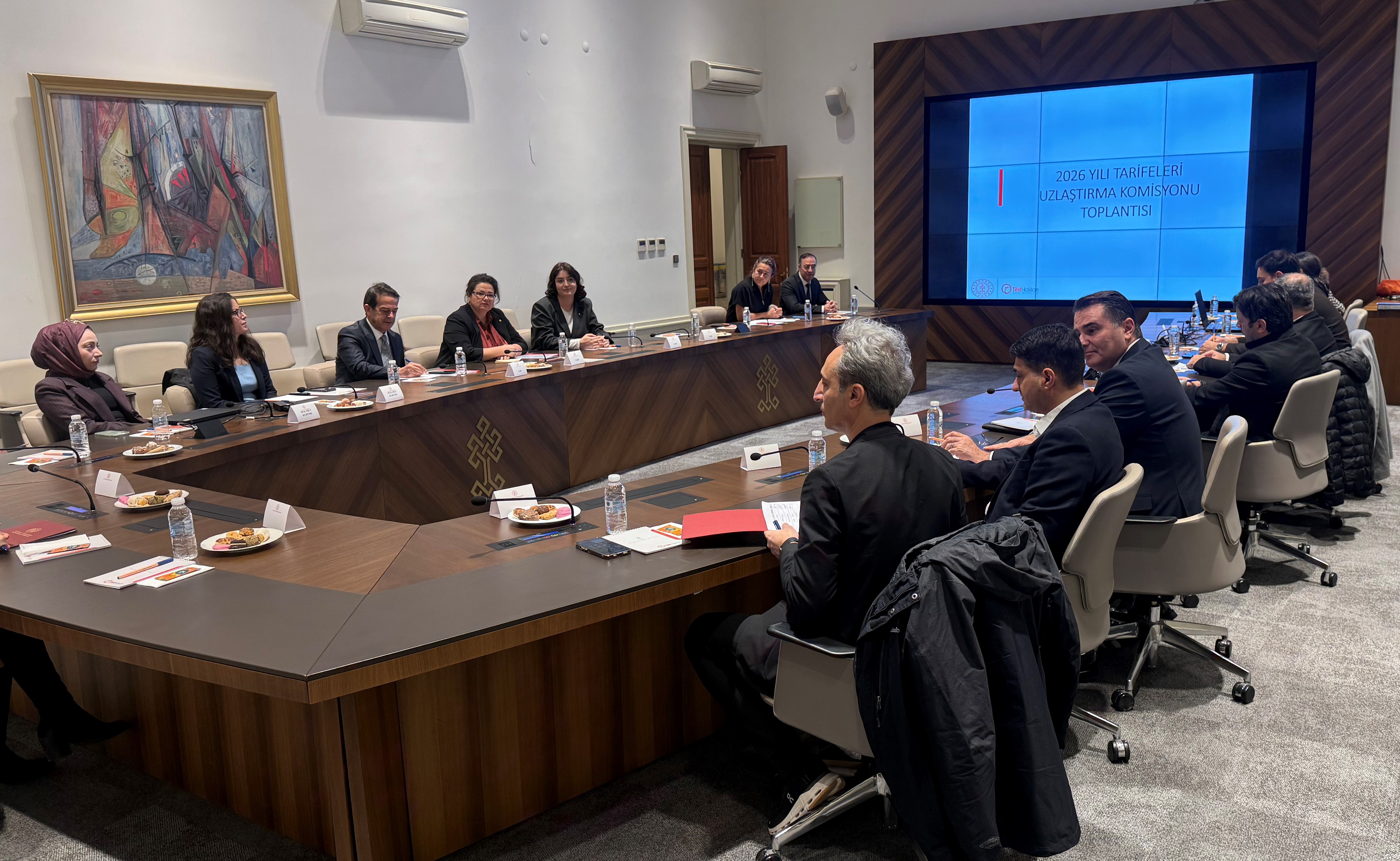 2026 yılı tarifelerine ilişkin Uzlaştırma Komisyonu Toplantısı, Kültür ve Turizm Bakanlığı Telif Hakları Genel Müdürlüğü ev sahipliğinde, TOBB Yönetim Kurulu Üyesi Ali Çandır, TOBB Sektör Meclisleri Müdürü Ayşe Çelebi Doğan, Rekabet Kurumu ve Müzik Meslek Birlikleri temsilcilerinin katılımları ile gerçekleştirildi.