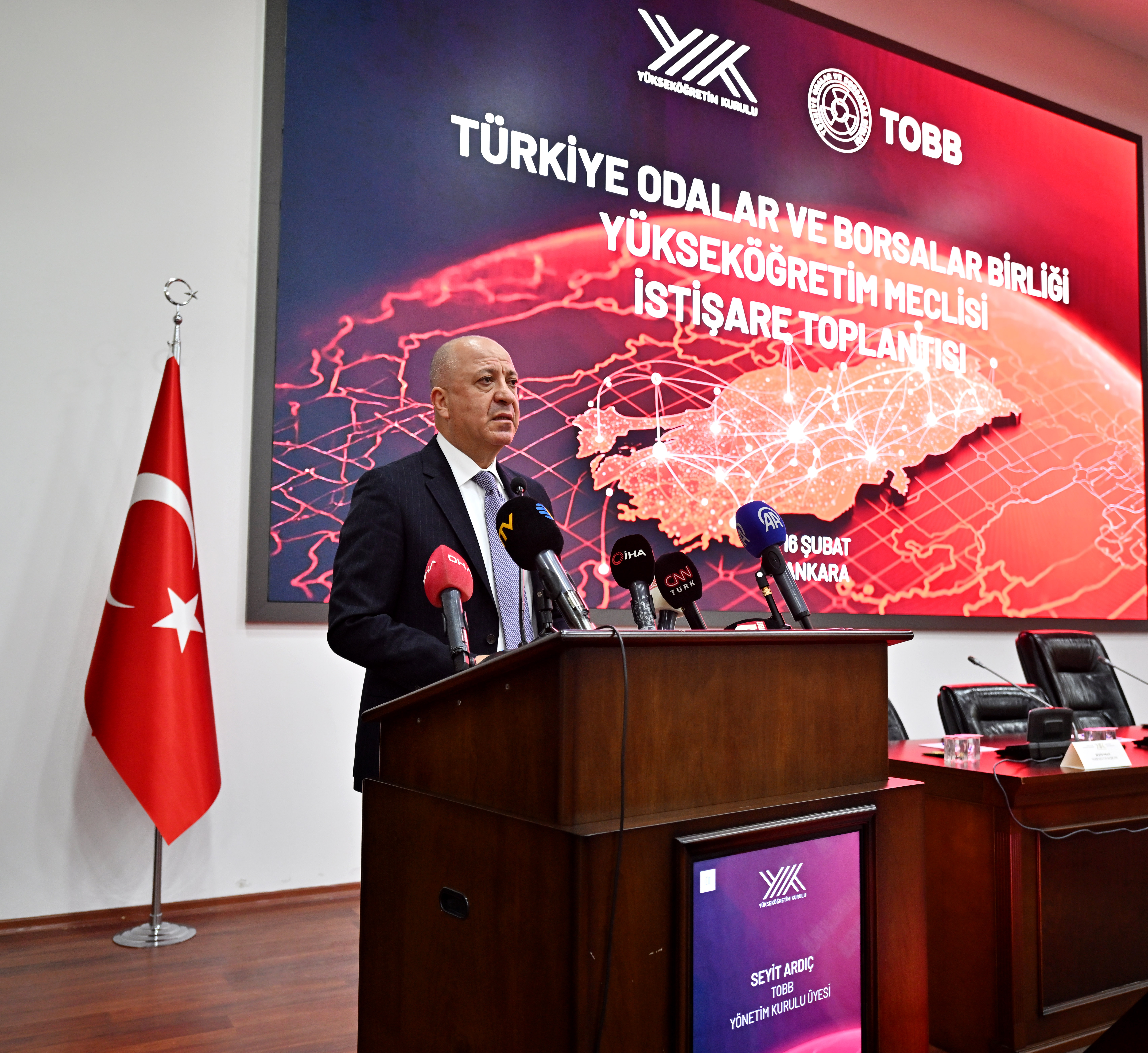 Türkiye Odalar ve Borsalar Birliği (TOBB) Yükseköğretim Meclisi istişare toplantısı, Yükseköğretim Kurulu (YÖK) ev sahipliğinde gerçekleştirildi. TOBB Yönetim Kurulu Üyesi Seyit Ardıç, YÖK Başkanı Erol Özvar ve Meclis Başkanı Bekir Okan’ın açılış konuşmaları ile başlayan toplantıda üniversite-sanayi iş birliği, yükseköğretimde kalite, eğitim politikaları ve sektörel ihtiyaçlara yönelik insan kaynağı yetiştirilmesi konuları ele alındı.
