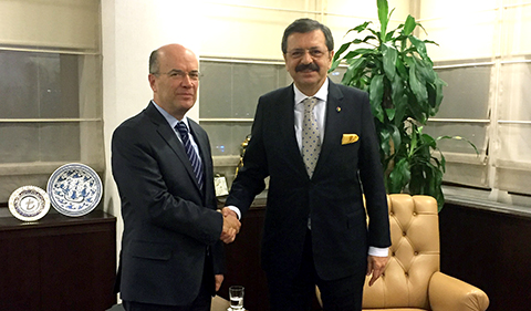 TOBB Başkanı M. Rifat Hisarcıklıoğlu, Dışişleri Bakan Yardımcısı Ali Naci Koru’yu makamında ziyaret ederek hayırlı olsun dileklerini iletti.