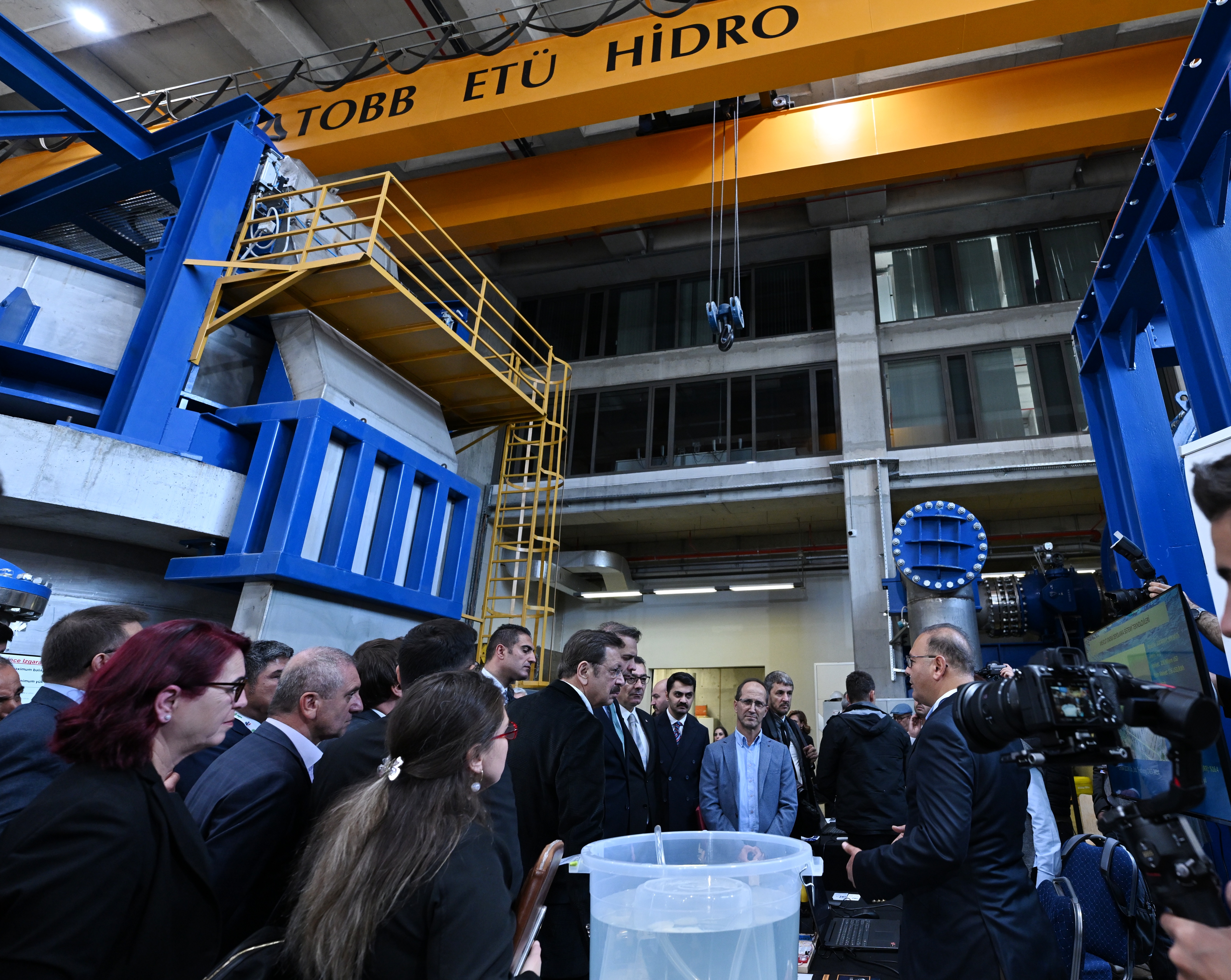 Bakan Bayraktar’a özel sektöre enerjinin tüm alanlarında verdiği destekler için teşekkür eden Hisarcıklıoğlu şunları söyledi: “Yenilenebilir enerji artık sadece bir alternatif değil, yeni ana akımın ta kendisidir. Rüzgâr ve güneşle beraber hidro enerji de; bu sistemin sigortasıdır. TOBB ETÜ olarak biz de bu konuda sektöre ve ülkemize katkı vermeye odaklandık. Cumhurbaşkanı Yardımcımız Sayın. Cevdet Yılmaz’ın Kalkınma Bakanlığı döneminde verdikleri destekle, TEMSAN’ın da katkılarıyla kurulan TOBB ETÜ Hidro, 2,5 MW’lık kapasitesi ile dünyanın en büyük su türbin tasarım ve test merkezi olarak faaliyete geçti. TOBB ETÜ Hidro Su Türbini Tasarım ve Test Merkezimiz, ülkemizin ihtiyaç duyduğu kritik alt yapıyı, üniversite-sanayi iş birliği yaklaşımıyla sunuyor. Esasında TOBB ETÜ Hidro, kamunun da desteği ile burada bir ekosistem oluşturmuştur. Böylelikle bugüne kadar yurtdışında yapılan test ve tasarımlar artık ülkemizde yapılabilir hale gelmiştir. TOBB ETÜ Hidro olarak amacımız; yerli türbin ve ekipman geliştirmede daha hızlı prototipleme, daha iyi tasarım doğrulaması ve sanayiye daha düşük maliyetle daha yüksek performans sağlamaktır. TOBB ETÜ Hidro’nun geliştirip olgunlaştırdığı konteyner tipi HES çözümü; içme suyu ve sulama hatlarındaki atıl durumdaki enerjiden elektrik üretilmesini sağlıyor.”