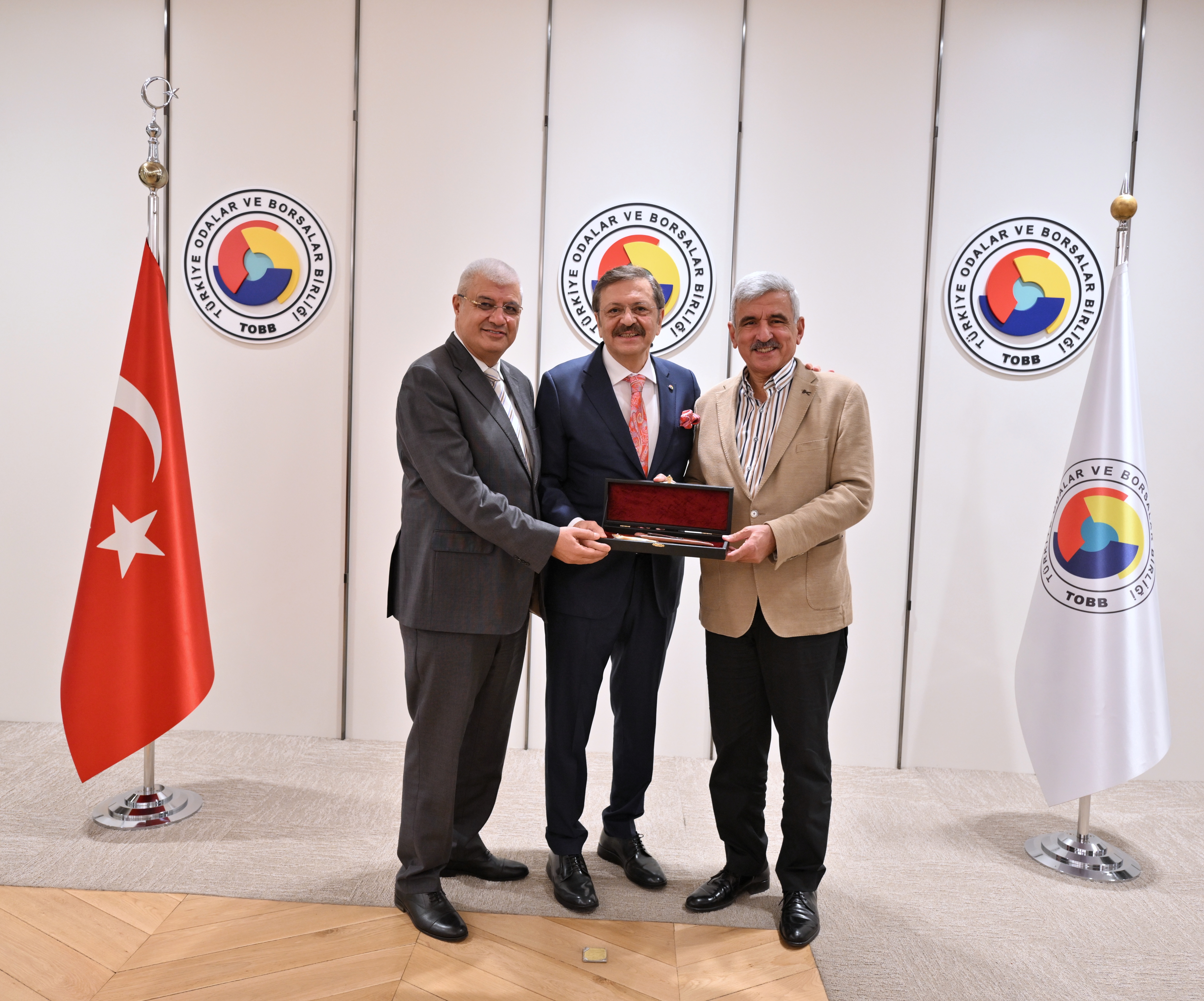 Türkiye Odalar ve Borsalar Birliği (TOBB) Başkanı M. Rifat Hisarcıklıoğlu, TOBB Dilekleri İnceleme Komisyonu Başkanı Mustafa Kandemir ve Kurul Üyelerini makamında kabul etti.
