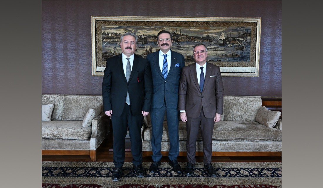 Türkiye Odalar ve Borsalar Birliği (TOBB) Başkanı M. Rifat Hisarcıklıoğlu, Kayseri Melikgazi Belediye Başkanı Mustafa Palancıoğlu ve Hacılar Belediye Başkanı Bilal Özdoğan’ı TOBB İkiz Kuleler’de ağırladı.