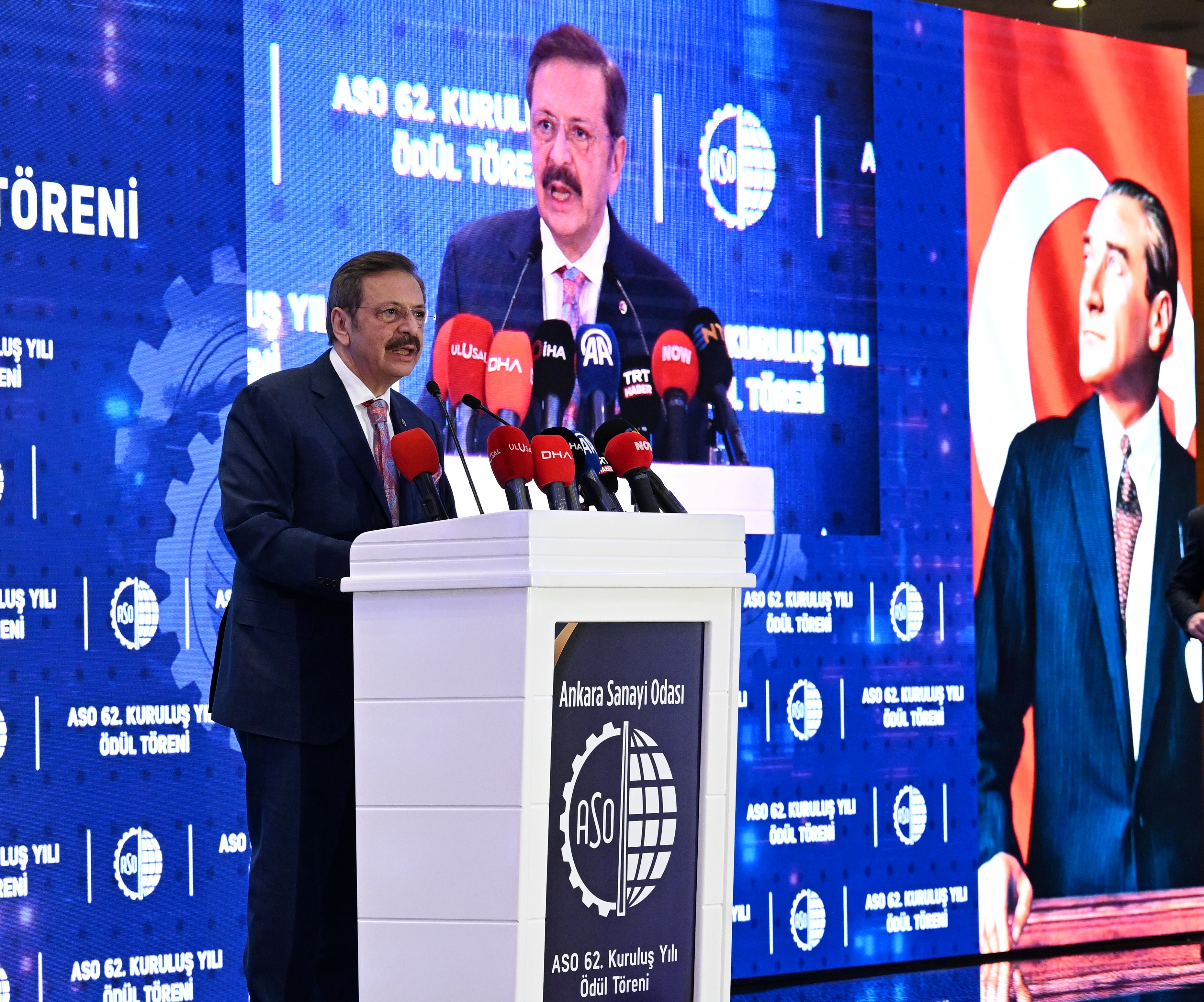 Ankara'nın savunma sanayisinden sağlık teknolojisine iş ve inşaat makinelerinden yüksek teknoloji üretimine kadar her alanda adından söz ettiren, dünyanın her köşesine ve 190'dan fazla ülkeye sanayi ürünleri ihraç eden bir şehir olduğunu anlatan Hisarcıklıoğlu, ASO'nun buradaki emeklerine dikkati çekti.