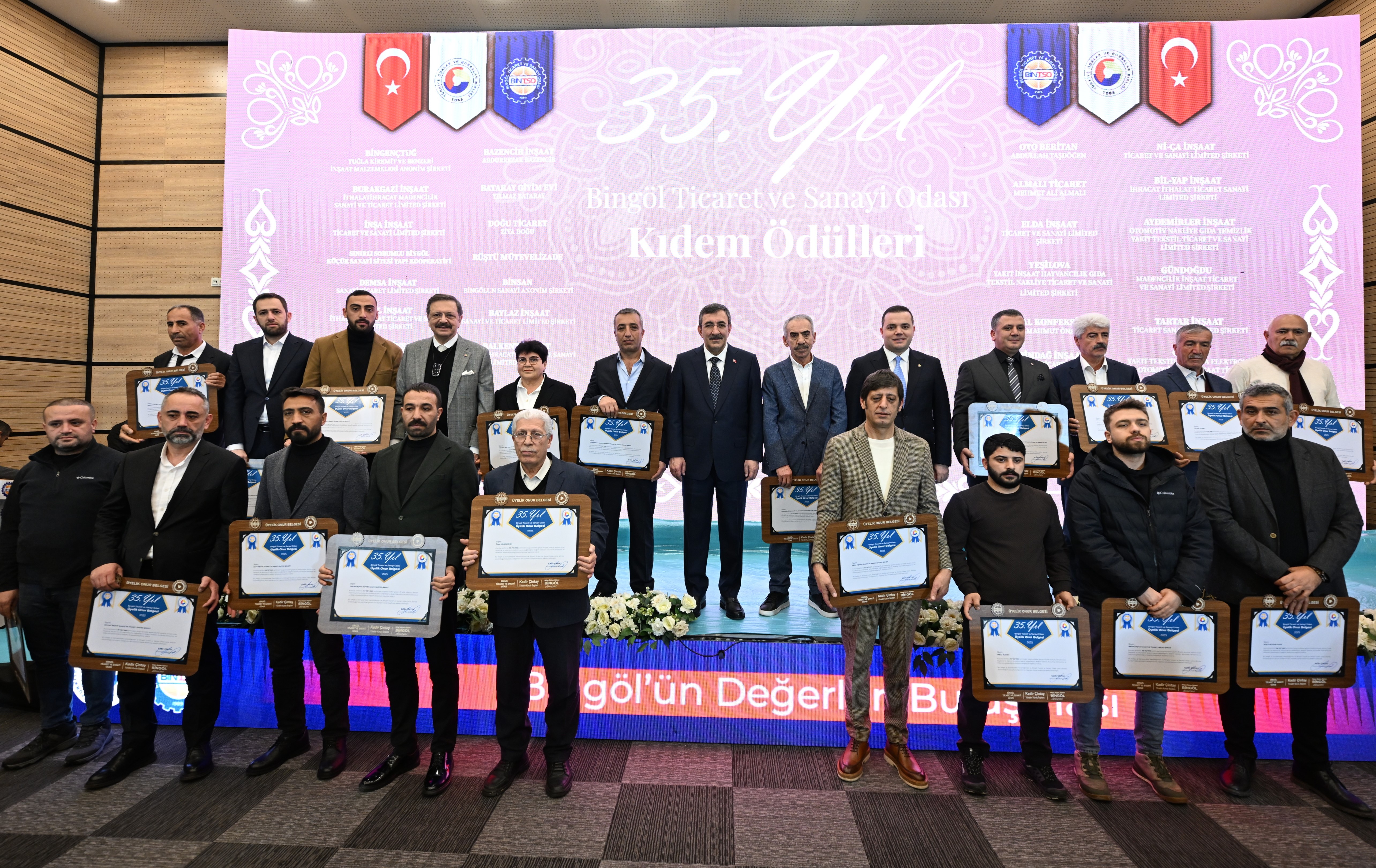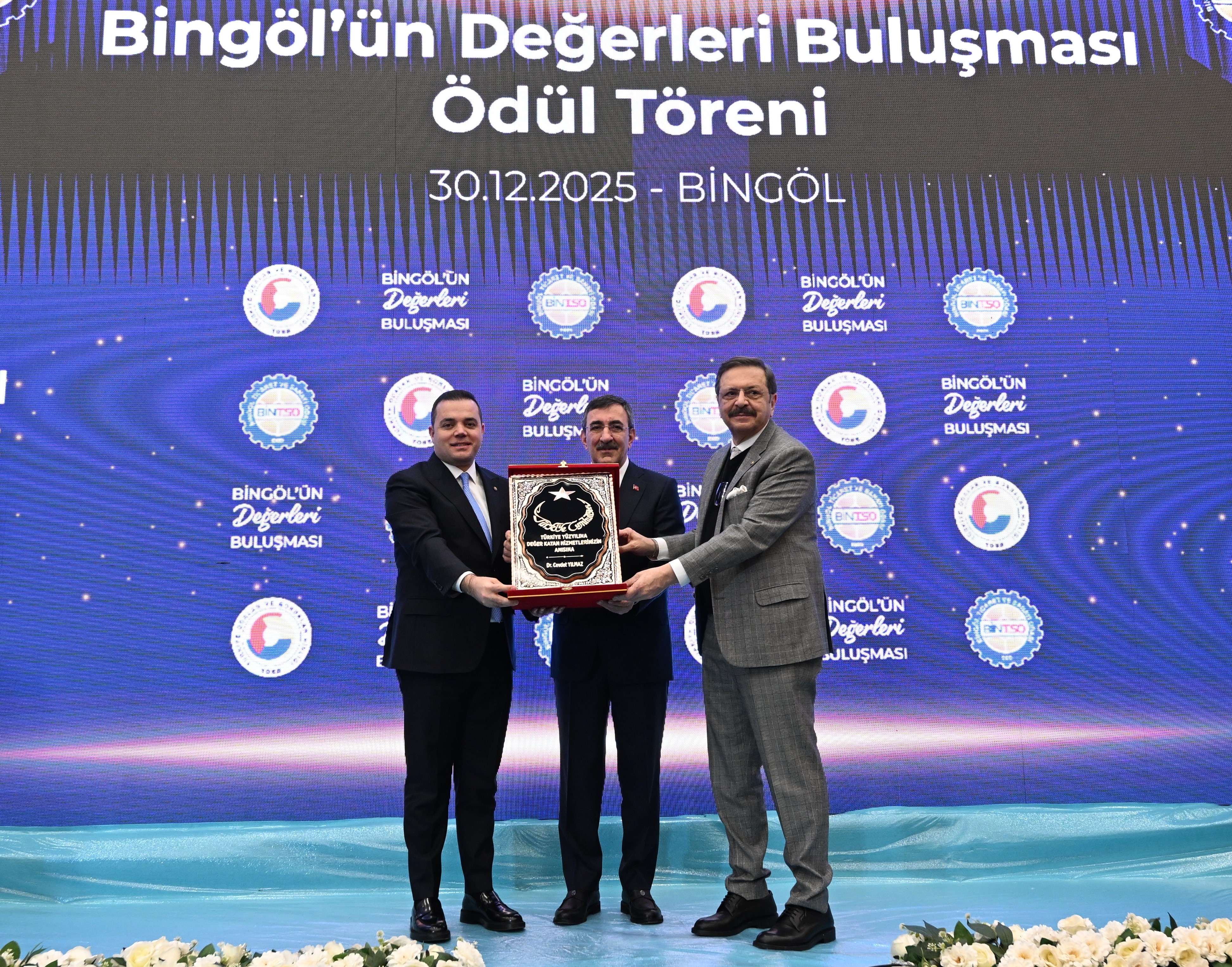 Sosyal medya hesabından açıklamada bulunan Hisarcıklıoğlu, "Cumhurbaşkanı Yardımcımız Sayın Cevdet Yılmaz’ın katılımıyla gerçekleştirdiğimiz "Bingöl'ün Değerleri Buluşması ve Ödül Töreni"nde Bingöl ekonomisine değer katan firmalarımızın başarılarını taçlandırdık.