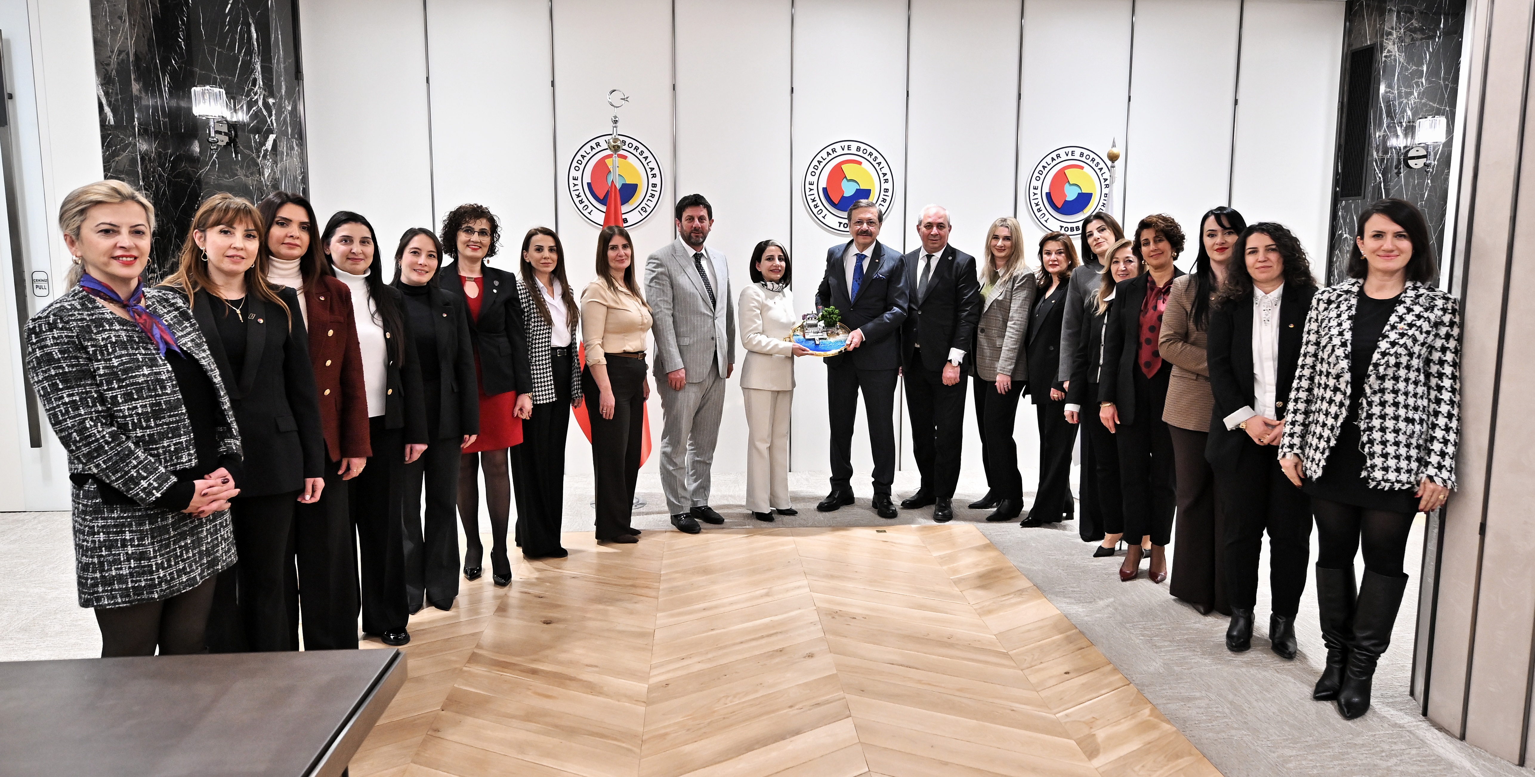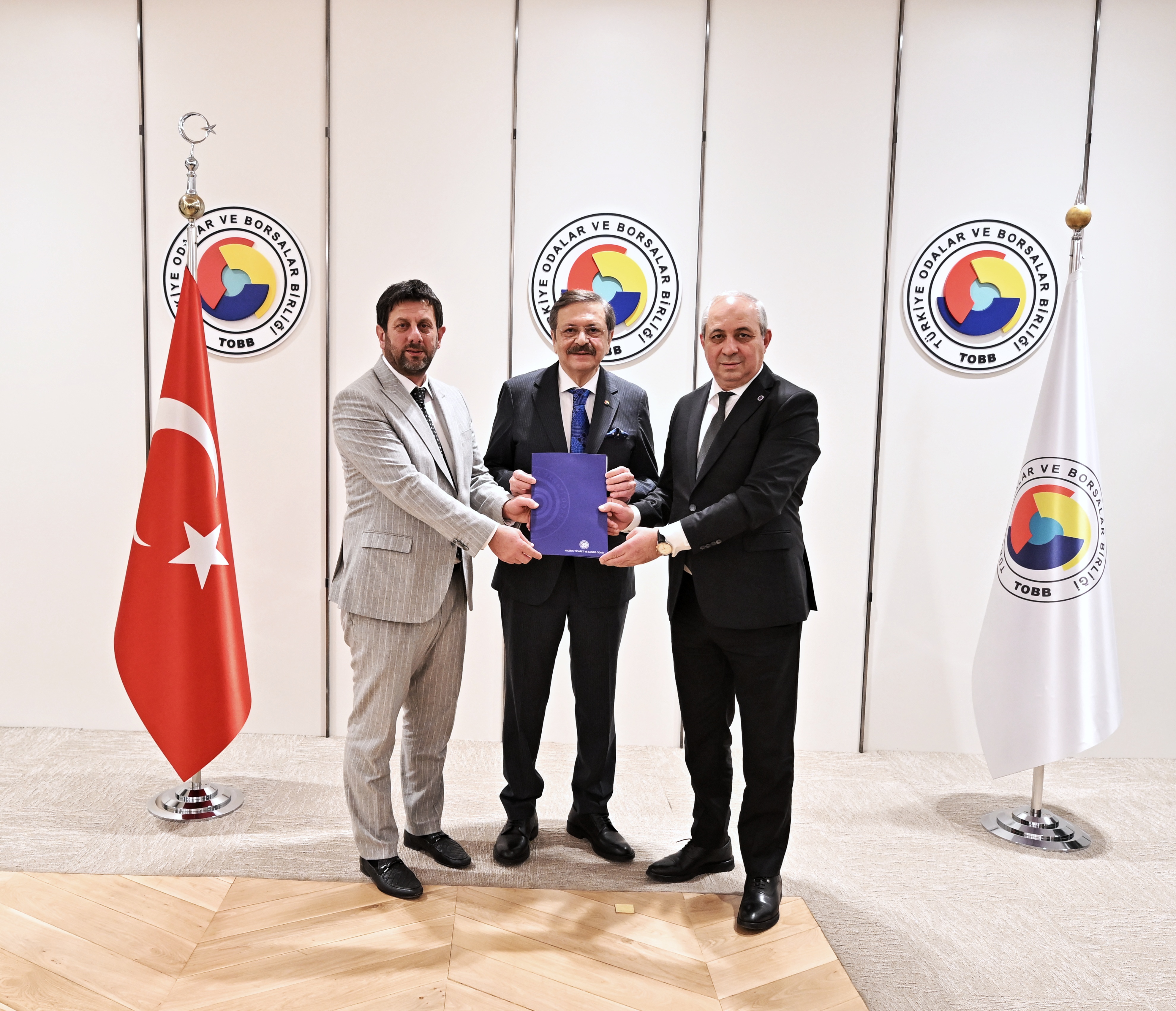 Türkiye Odalar ve Borsalar Birliği (TOBB) Başkanı M. Rifat Hisarcıklıoğlu, Yalova Ticaret ve Sanayi Odası Yönetim Kurulu Başkanı Cemil Demiryürek, Meclis Başkanı Muhammet Sarıoğlu, Yalova Kadın Girişimciler Kurulu Başkanı Hayrete Yenikan ve kurul üyelerini makamında kabul etti.