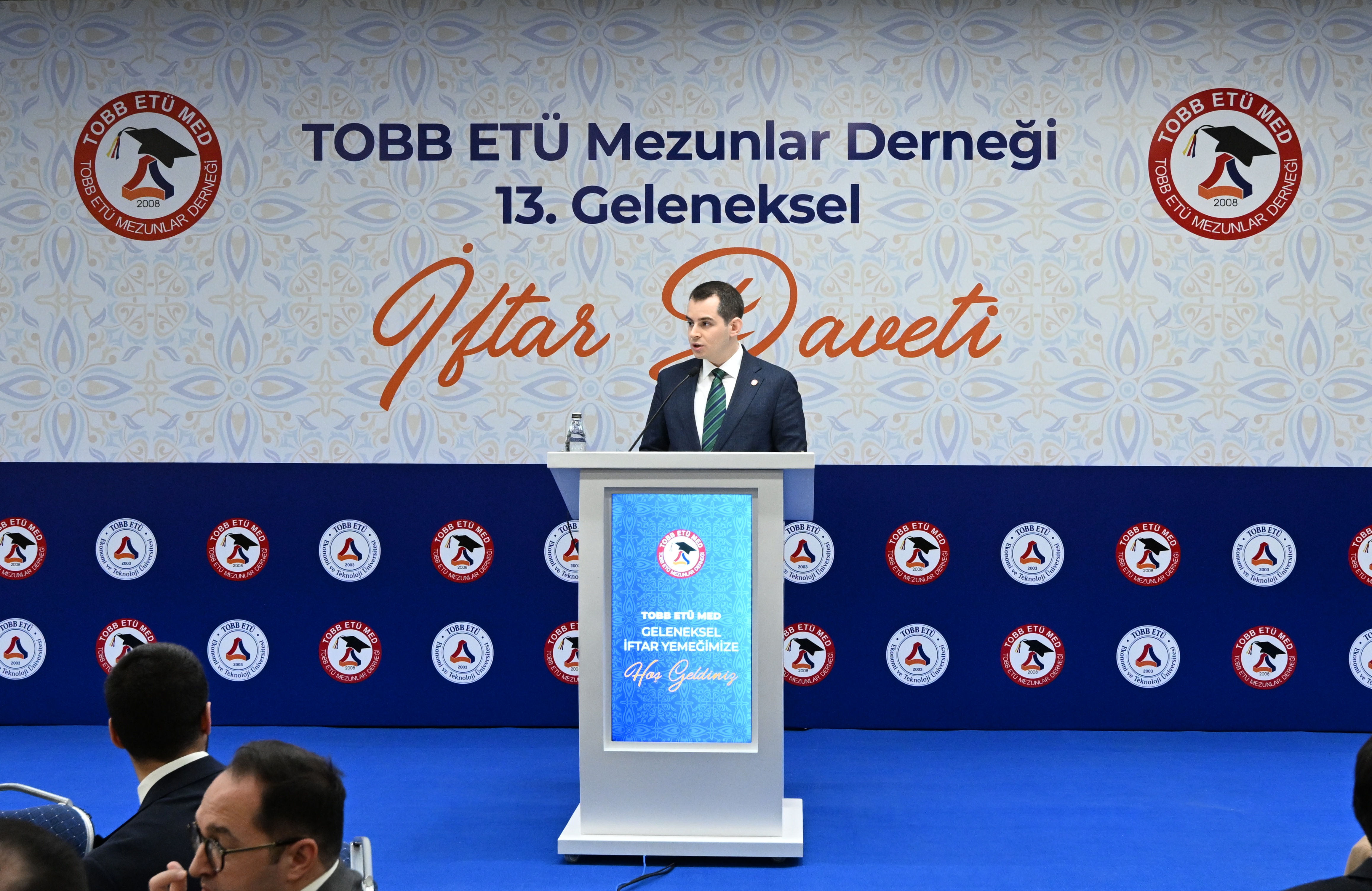 “Üniversiteleri güçlü yapan sadece binaları ya da kampüsleri değil, mezunlarının birbirine sahip çıkan güçlü ağıdır. Eğer bir şirket kurduysanız TOBB ETÜ’lü istihdam edin. Özel sektörde ya da kamuda görev yapıyorsanız TOBB ETÜ’lü arkadaşınıza referans olun. Eskiden bürokrasiden şikayet ederdik. Çok şükür TOBB ETÜ’lü bürokratlarımız da var. Artık Bakanlıklara gittiğimde TOBB ETÜ mezunlarımızı görüyorum. Bakanlarımıza, genel müdürlerimize sorduğumda da özellikle TOBB ETÜ mezunlarını tercih ettiklerini söylüyorlar. Unutmayın: siz sadece bir üniversitenin mezunu değilsiniz. Siz, Türk iş dünyasının en büyük ailesinin de bir parçasısınız. 81 ilde bir kapınız var. Sizlere bir önemli tavsiyem de, artık dijital bir meslektaşınız/rakibiniz olduğunu unutmayın: Yapay zeka. Önümüzdeki 50 yıl içinde bugünkü mesleklerin yarısından fazlası tarihe karışacak. Yapay zeka ve otomasyon en büyük rakibiniz oldu. Ama bir şey var ki değişmeyecek: girişimcilik! Girişimciliği ve bunun için de yenilikçi olmayı ve hayal kurmayı bırakmayın. Yaptığınız her işte, bulunduğunuz her ortamda vicdanlı olun. Adaletli olun. Güçlünün haklı olduğu değil, haklının güçlü olduğu bir dünya için çalışın. Dilinden, dininden, kimliğinden, görüşünden, mezhebinden dolayı kimseyi ötekileştirmeyin. Konfor alanınıza takılıp kalmayın. Aklınızı kimseye kiraya vermeyin. Fikri hür, irfanı hür, vicdanı hür bir neslin üyesi olarak bu bayrağı en güzel şekilde taşıyın.”