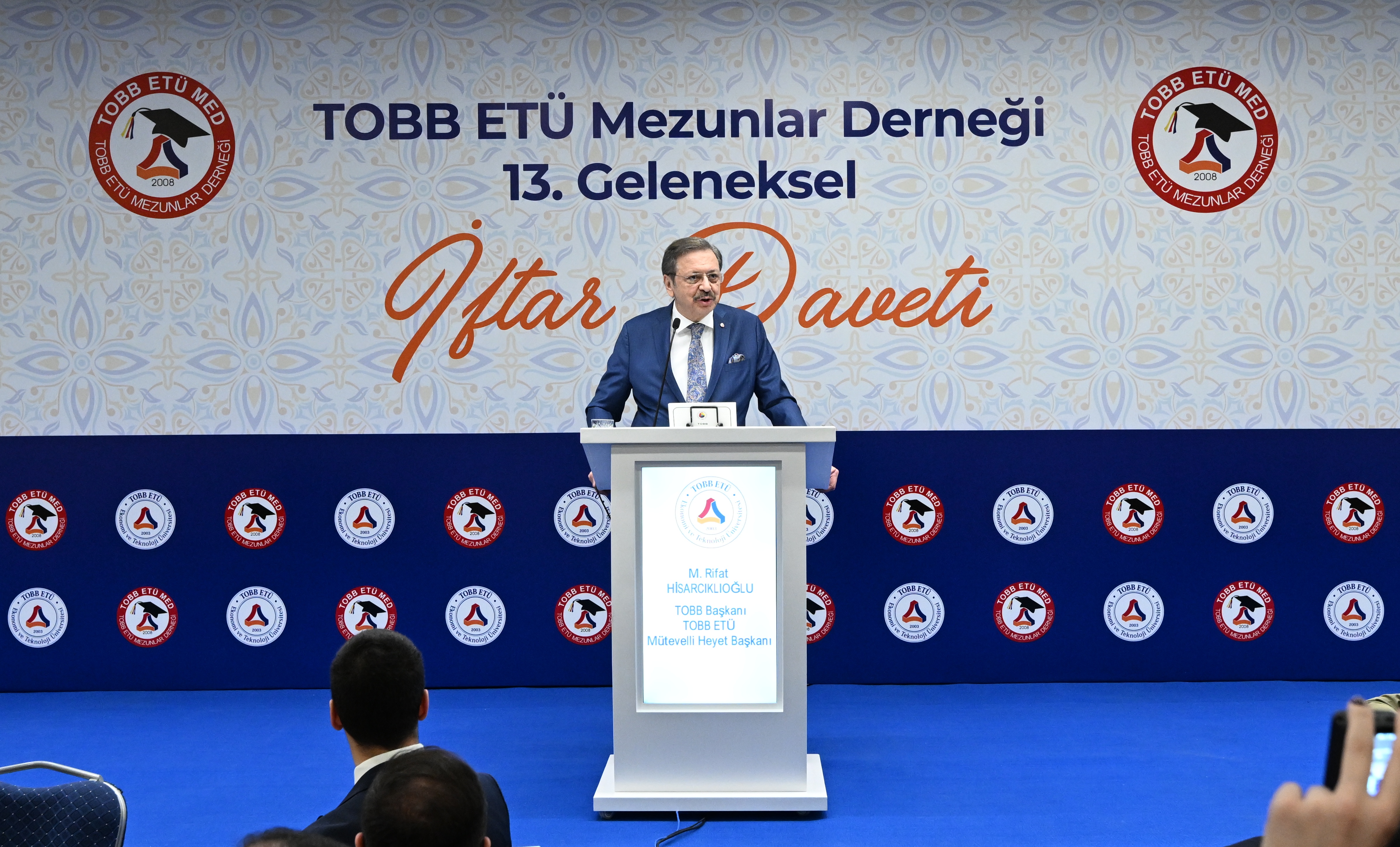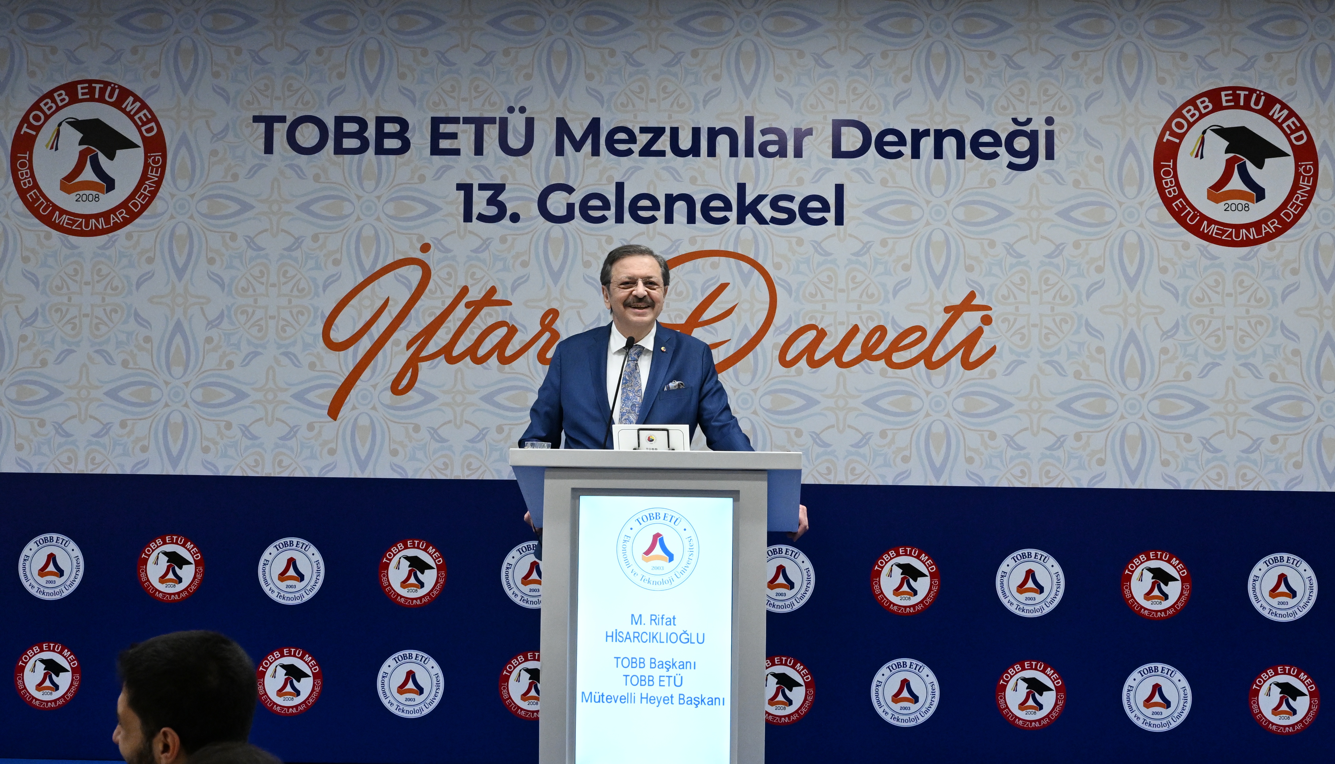 Burada mezunlara hitap eden Hisarcıklıoğlu, Ramazan ayının paylaşma, dayanışma ve kardeşlik değerleriyle anlam kazandığını ifade ederken, TOBB ETÜ mezunlarına da okul sonrası hayatlarına dair tavsiyelerde bulundu. TOBB ETÜ’nün kendisinin en çok gurur duyduğu projesi olduğundan söz eden Hisarcıklıoğlu, “Çünkü eğitime yapılan yatırım, ülkeye yapılan en büyük yatırım. TOBB ETÜ sadece diploma veren bir kurum değil. İş dünyasını bilen, sahayı tanıyan, sorun çözen, inisiyatif alan insan yetiştiren bir model. Ortak eğitim modeliyle sınıfla hayatı birleştiren üniversite. Kamuda, özel sektörde, akademide, girişimcilikte başarı hikâyelerimiz var. Buralarda mezunlarımızı gördükçe göğsümüz kabarıyor. Bakın bu sene itibariyle yüksek lisans ve doktora dahil 13 bin mezun verdik. Bugüne kadar 990 TOBB ETÜ mezunu 1.280 şirket kurdu ya da ortağı oldu. Türkiye’de nüfus içinde girişimcilerin payı %2’dir. TOBB ETÜ mezunları içinde girişimcilerin payı %11 oldu. İşte bu yüzden TOBB ETÜ, Türkiye’nin girişimci üniversitesidir diyoruz. Mezunlarımız arasında Milletvekili, Belediye Başkanı, Kamuda genel müdür, ateşeler ve kaymakamlar var. Hedefimiz; TOBB ETÜ mezunlarının da birbirini desteklediği, birlikte iş yaptığı, birbirine referans olduğu çok güçlü bir ekosistem oluşturmak. Artık devir know-how değil, know-who devri!” diye konuştu.