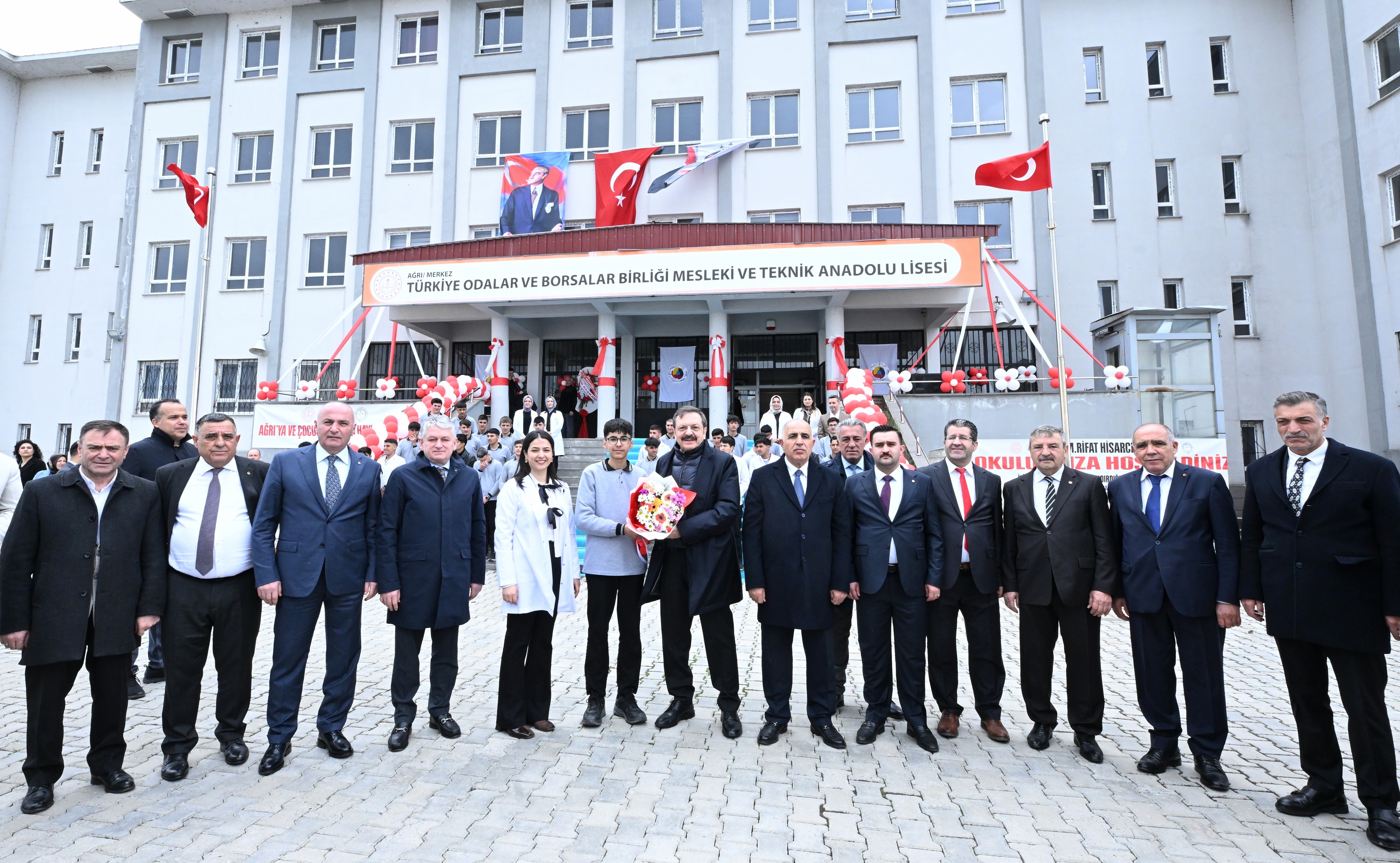 Sosyal medya hesabından paylaşımda bulunan Hisarcıklıoğlu, “Ağrı TOBB Mesleki ve Teknik Anadolu Lisesi’nde öğrencilerimizle bir araya geldik. Çocuklarımızla sohbet ettik. Okulumuz öğrenci ve öğretmenlerimize hayırlı olsun. TOBB olarak ülkemizin 81 ilinde 245 eğitim öğretim tesisini hayata geçirmenin gururunu yaşıyoruz. Şehir şehir, ilçe ilçe eğitim öğretim tesisi inşa etmeye devam ediyoruz. 5 okulumuzun inşaatı, 57’sinin projelendirmesi sürüyor. Tüm çalışmalarımız tamamlandığında 307 eğitim öğretim tesisini çocuklarımıza ve ülkemize kazandırmış olacağız. Çabamız da umudumuz da çocuklarımız ve ülkemiz için”.