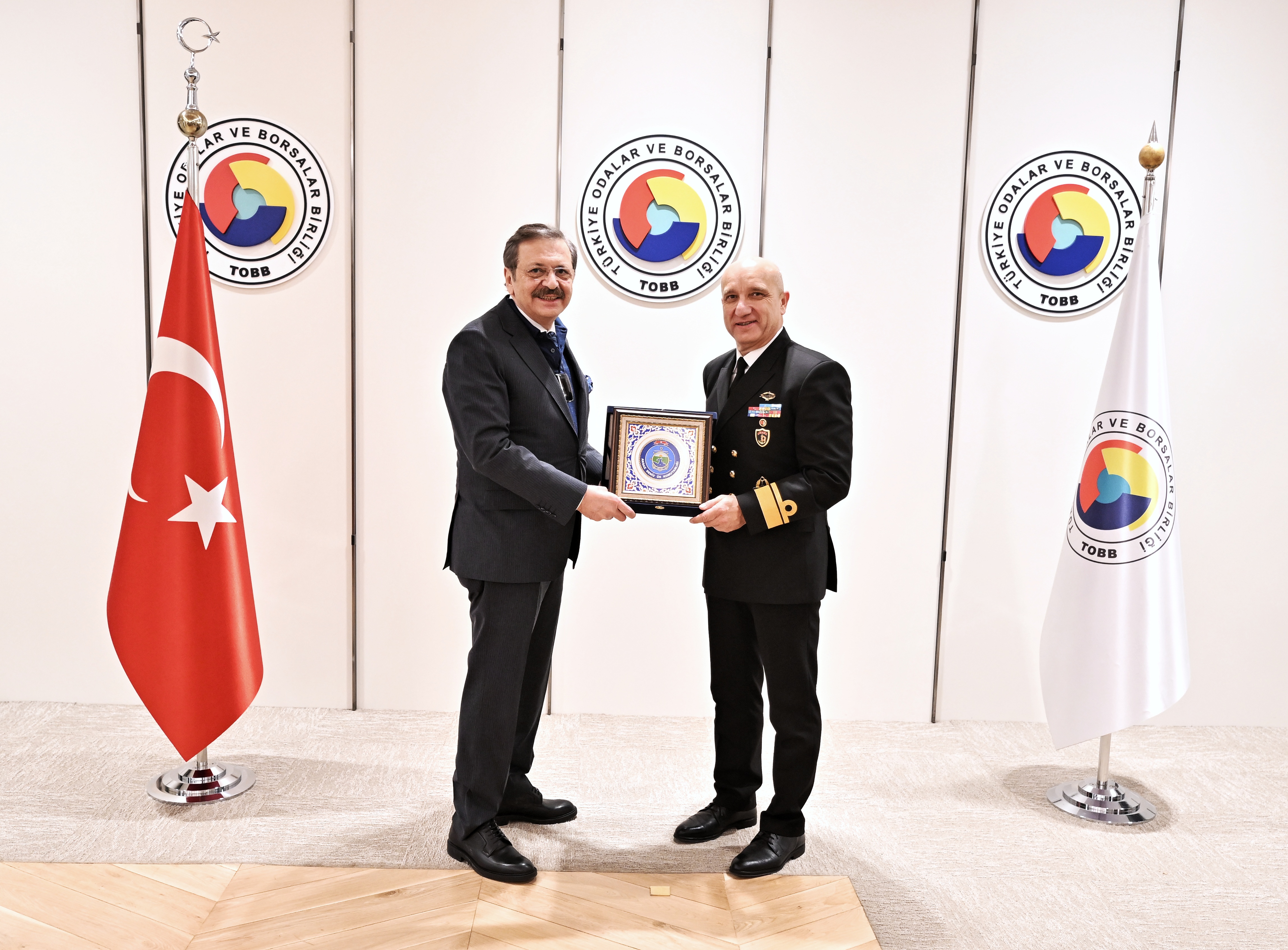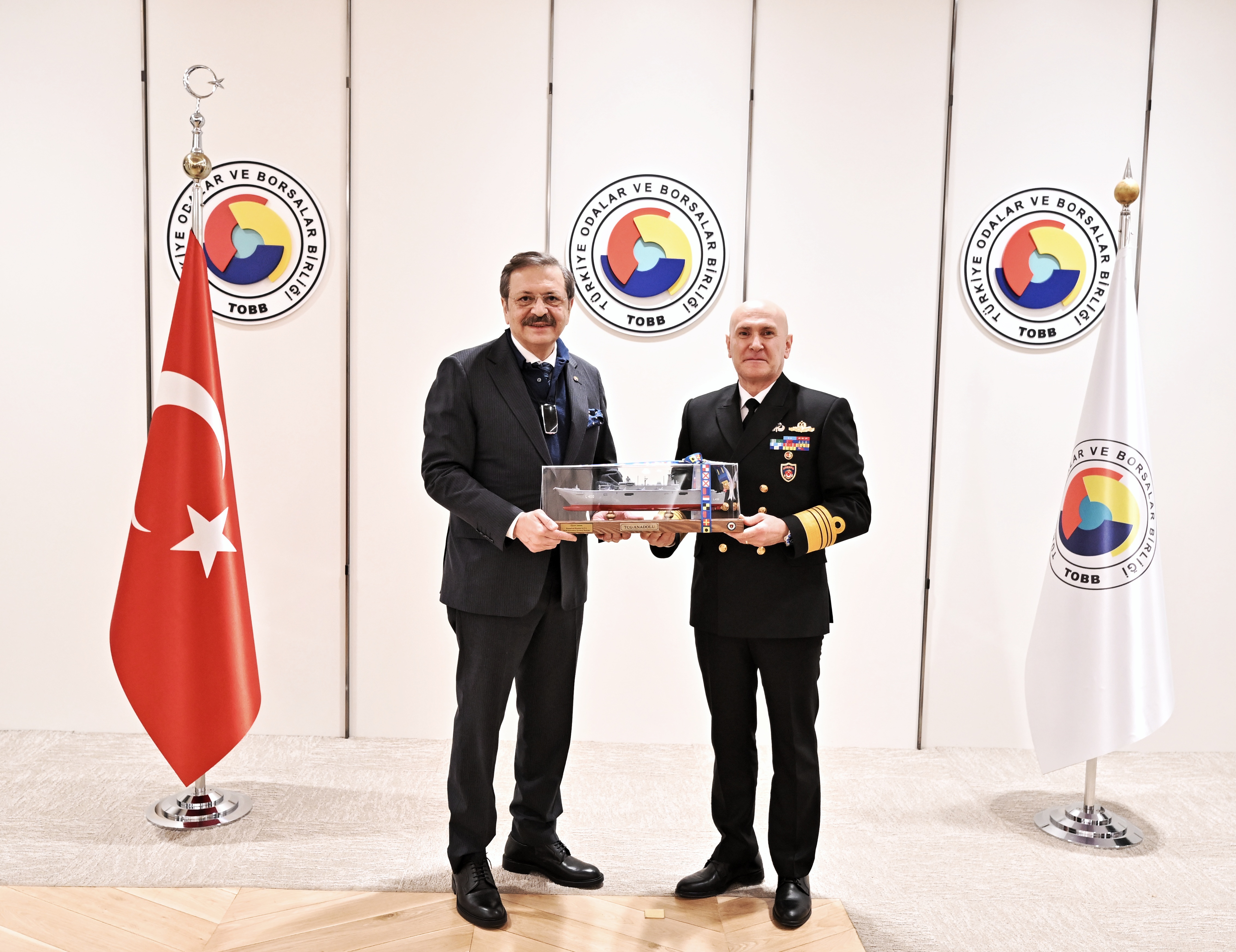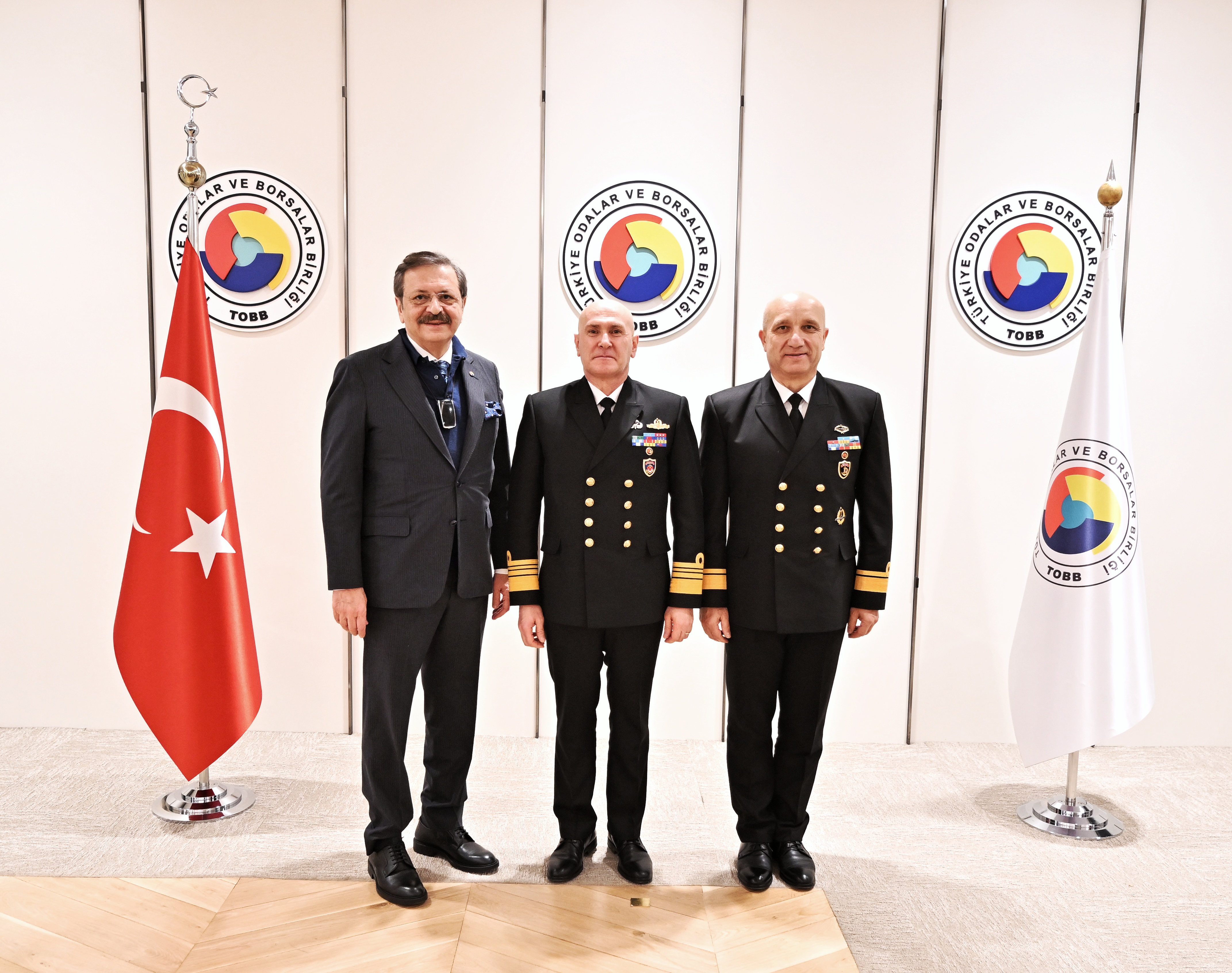 Türkiye Odalar ve Borsalar Birliği (TOBB) Başkanı M. Rifat Hisarcıklıoğlu, Deniz Kuvvetleri Komutanlığı Kurmay Başkanı Koramiral Mustafa Kaya ve Aksaz Deniz Üs Komutanı Tuğamiral Hamdi Abanoz’u TOBB İkiz Kuleler’de ağırladı.