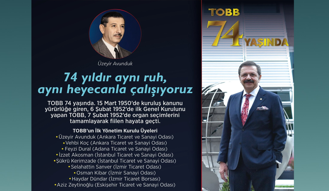 The Union of Chambers and Commodity Exchanges of Türkiye (TOBB) is celebrating its 74th anniversary. TOBB President M. Rifat Hisarcıklıoğlu said, “74 years later, with the same spirit and enthusiasm, we c...