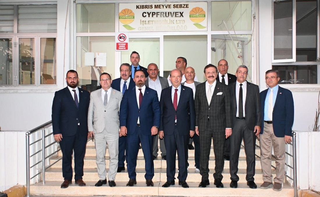 Hisarcıklıoğlu briefed President Tatar on the construction work of the Güzelyurt Cold Storage Facility, coordinated by TOBB as part of the “Project to Develop Advanced Fruit Processing and Frozen-Cold Storage Capacity in the TRNC Citrus Sector,” which aims to increase agricultural production and exports.