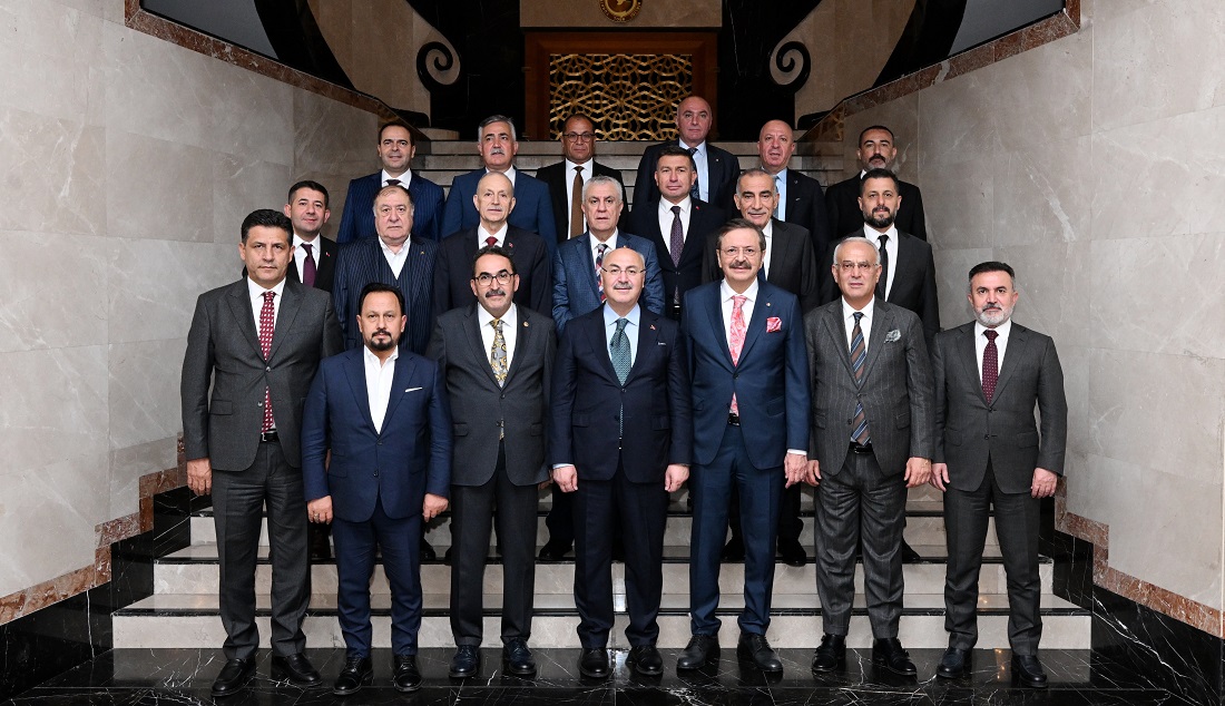 M. Rifat Hisarcıklıoğlu, President of the Union of Chambers and Commodity Exchanges of Türkiye (TOBB), hosted Adana Governor Yavuz Selim Köşger, Adana MPs, District Mayors, Chamber/Exchange Presidents, Provincial Presidents of Political Parties, and their accompanying delegation at TOBB Twin Towers.