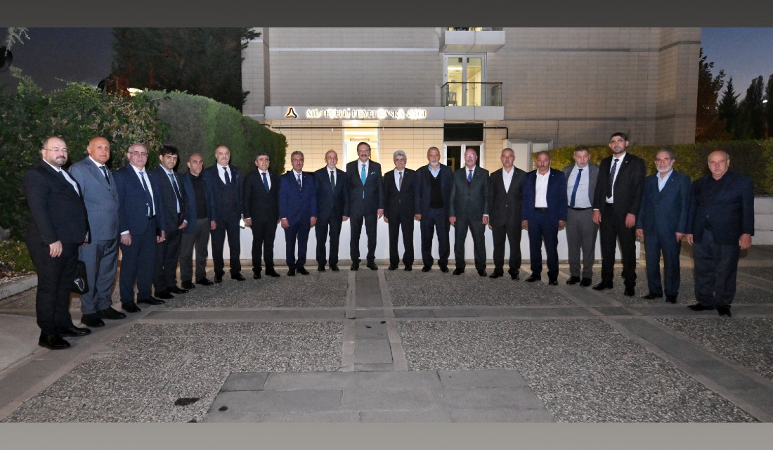 M. Rifat Hisarcıklıoğlu, President of the Union of Chambers and Commodity Exchanges of Türkiye (TOBB), welcomed Mehmet Ali Dumandağ, Chairman of the Board of Directors of Elazığ Commodity Exchange, Aydın Torgut, Chairman of the Assembly, and members of the Board of Directors and the High Advisory Board.