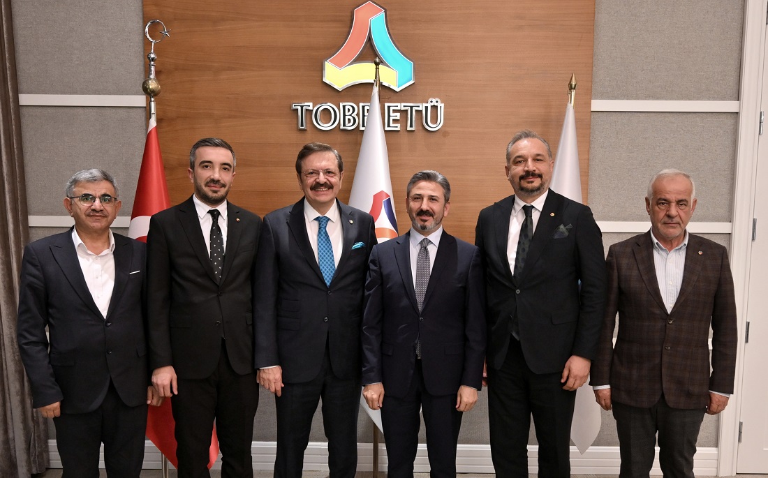 TOBB President M. Rifat Hisarcıklıoğlu met with Deputy Minister of Labor and Social Security Ahmet Aydın, Adıyaman Chamber of Commerce and Industry Board Chairman Mehmet Torunoğlu, Assembly Chairman Abdulgani Bereket, and Board Vice Chairmen Mahmut Arslan and Hacı Dikmen.