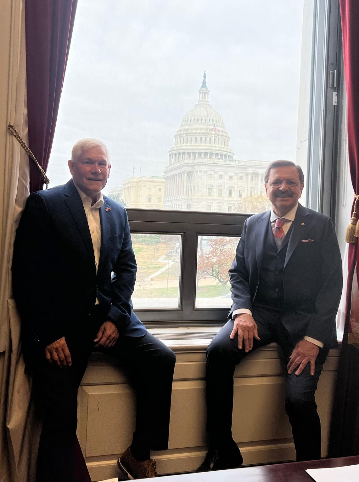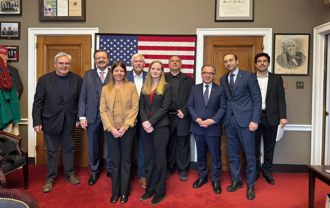 M. Rifat Hisarcıklıoğlu, President of the Union of Chambers and Commodity Exchanges of Türkiye (TOBB), met with U.S. Representative Pete Sessions of Texas as part of his U.S. itinerary to discuss the development of Türkiye-U.S. trade relations.