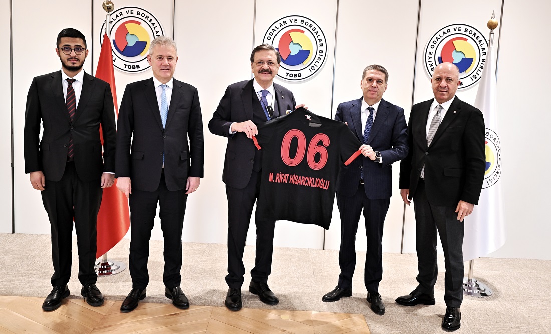 The Union of Chambers and Commodity Exchanges of Türkiye (TOBB) President M. Rifat Hisarcıklıoğlu welcomed Gençlerbirliği Sports Club Board Chairman Arda Çakmak at TOBB Twin Towers. ​
