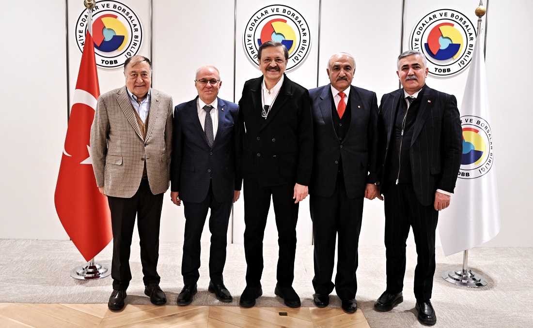 The Union of Chambers and Commodity Exchanges of Türkiye (TOBB) President M. Rifat Hisarcıklıoğlu welcomed Sungurlu Commodity Exchange Board Chairman Mustafa Kürbüz and former Assembly member Hasan Kartaler at TOBB Twin Towers.