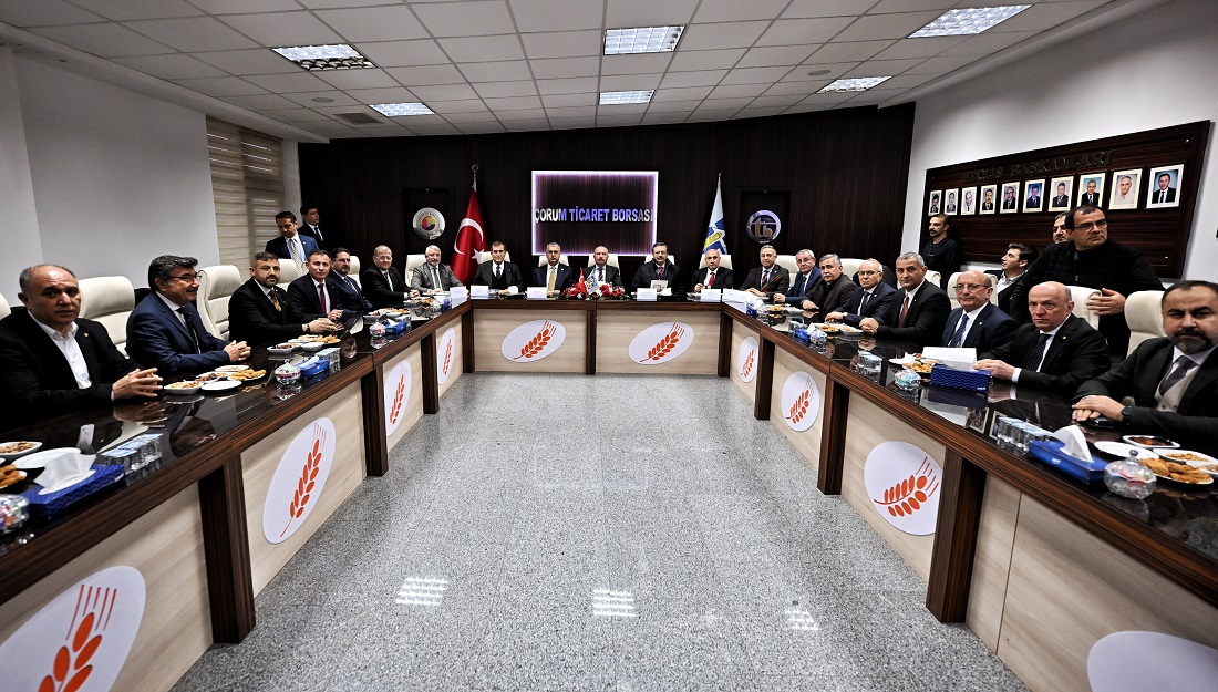 During the meeting, where the difficulties faced by members were discussed, Hisarcıklıoğlu received information about the Çorum Commodity Exchange’s Agricultural Products Storage Facilities Construction Project.