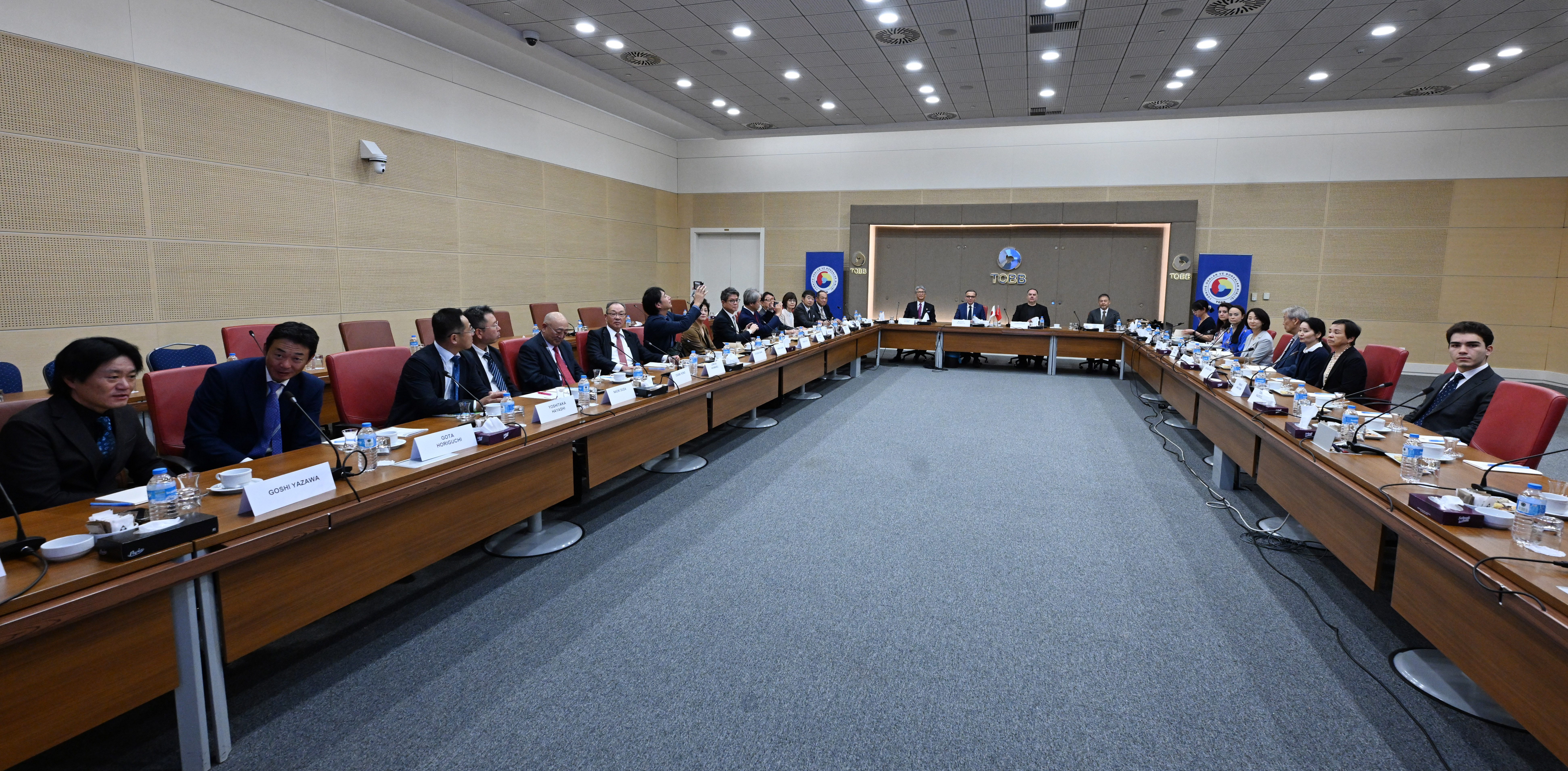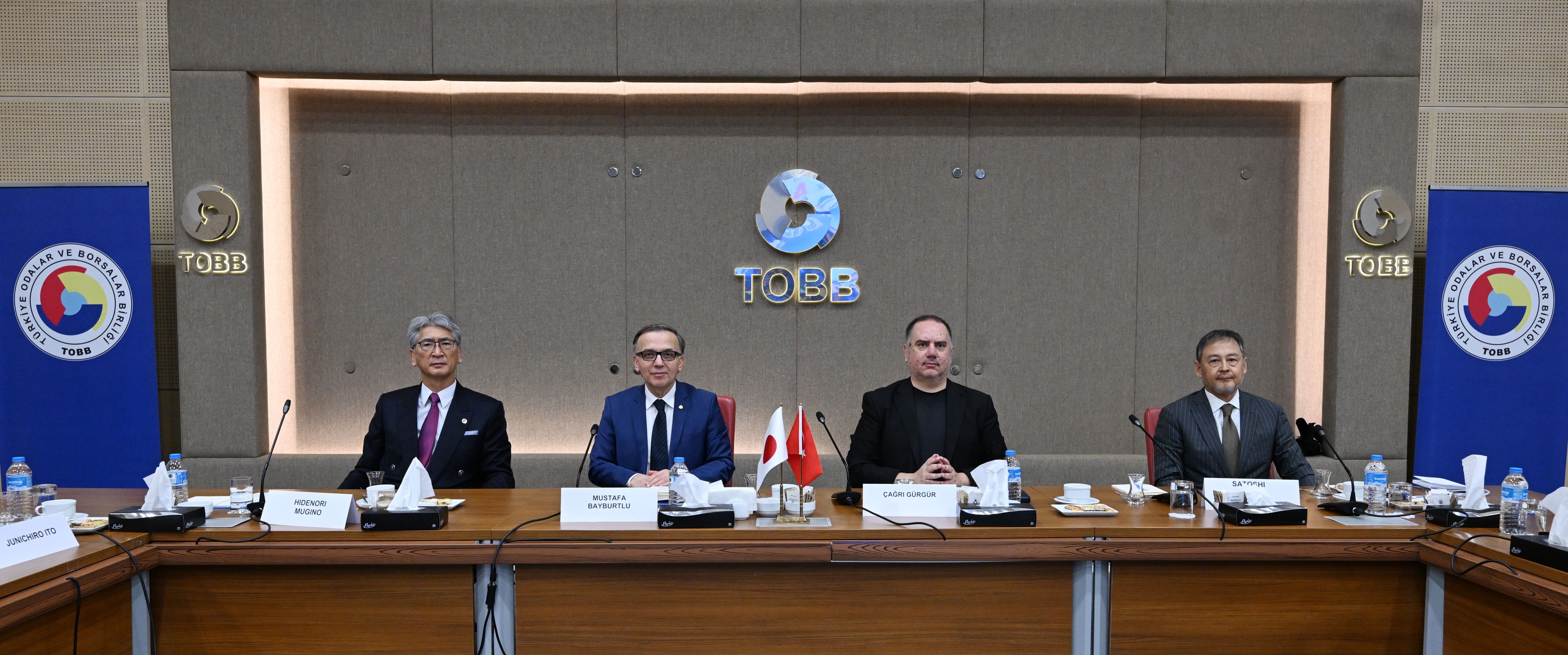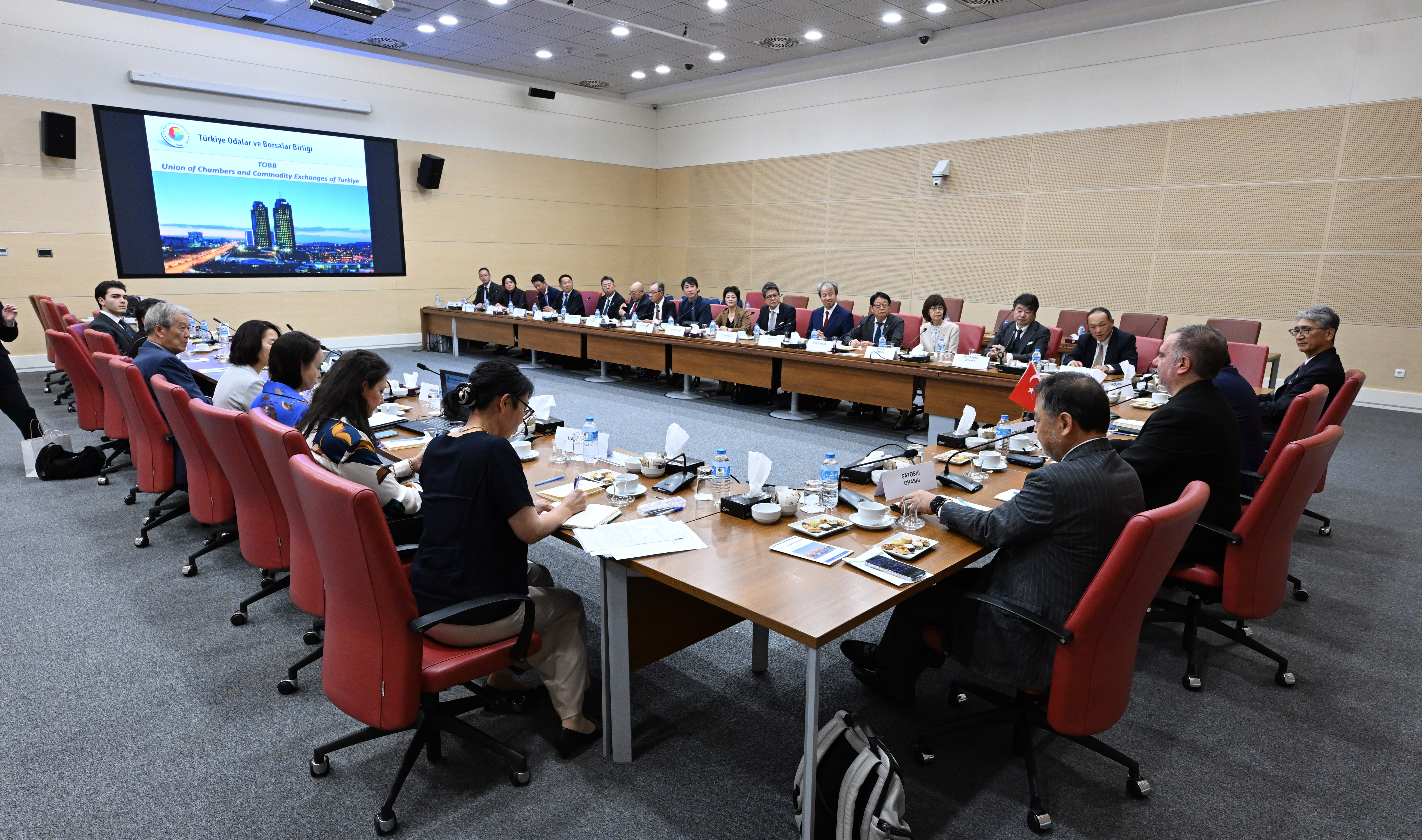 Japonya’nın Toyama Vilayeti Kurumsal Yöneticiler Derneği Başkanı Hidenori Mugino başkanlığındaki heyet TOBB’u ziyaret ederek, TOBB Genel Sekreter Yardımcısı Mustafa Bayburtlu ve TOBB Başkanlık Baş Danışmanı Hüseyin Çağrı Gürgür ile görüştü. Heyete TOBB faaliyetleri ve Türkiye ekonomisi hakkında sunum yapıldı.
