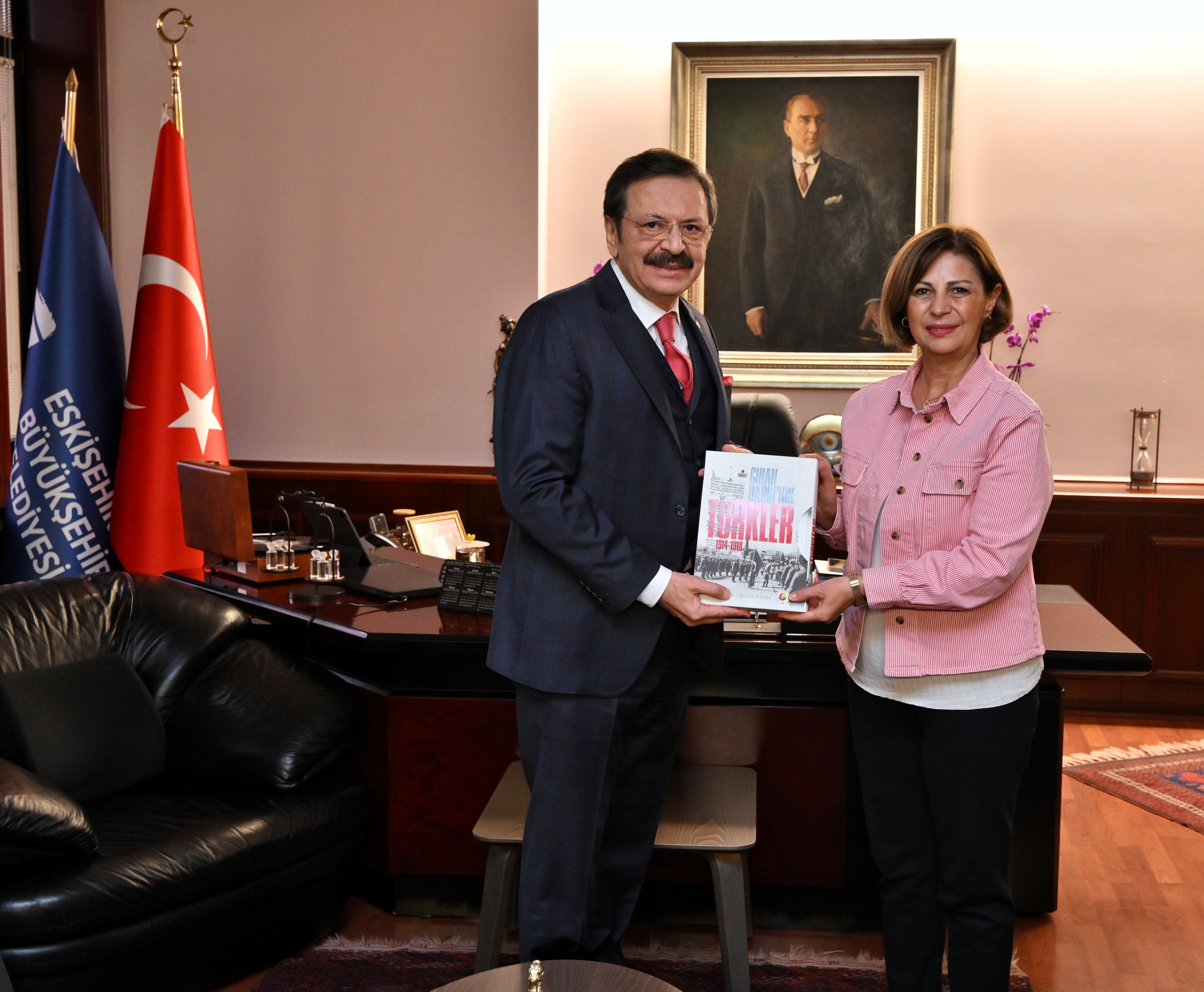 Türkiye Odalar ve Borsalar Birliği (TOBB) Başkanı M. Rifat Hisarcıklıoğlu, Eskişehir Büyükşehir Belediye Başkanı Ayşe Ünlüce'yi makamında ziyaret etti.
