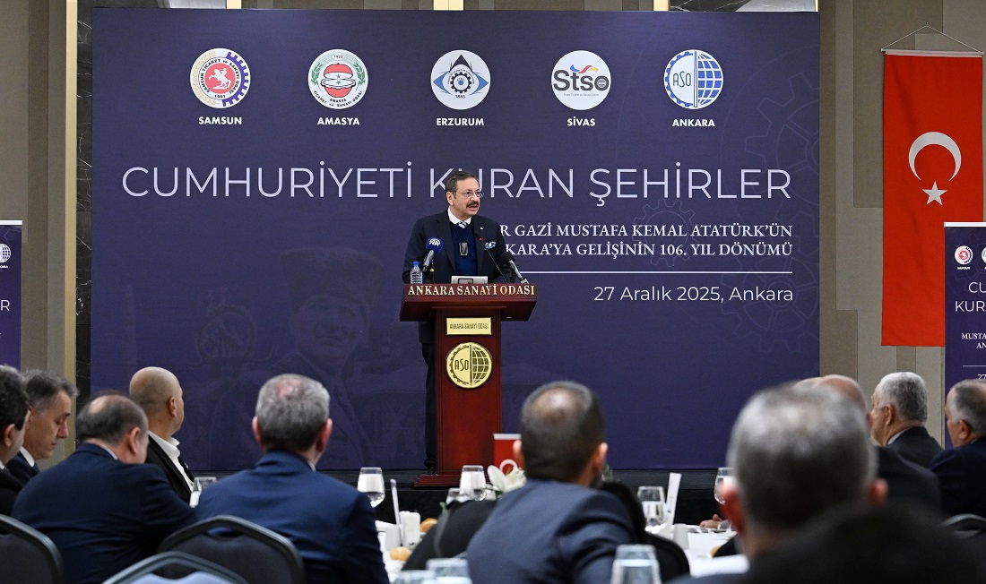 TOBB President M. Rifat Hisarcıklıoğlu attended the “Cities that Founded the Republic” project event hosted by the Ankara Chamber of Industry. The Chambers of Samsun, Amasya, Erzurum, Sivas, Ankara, and T...